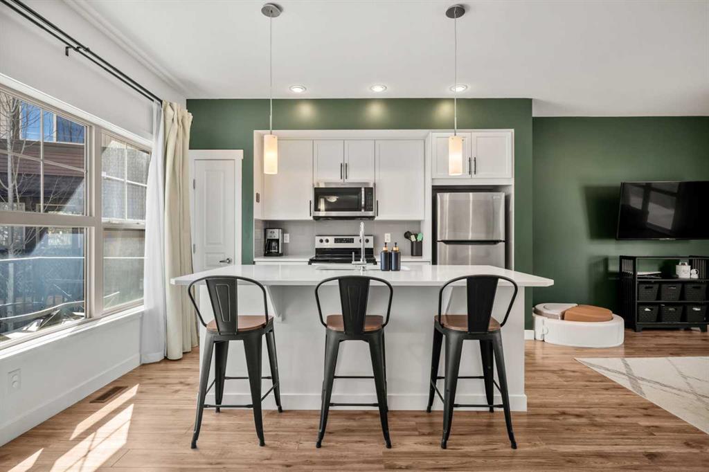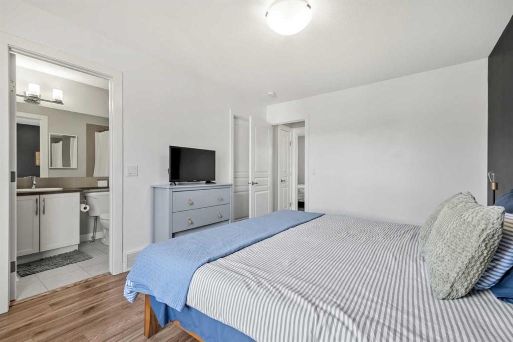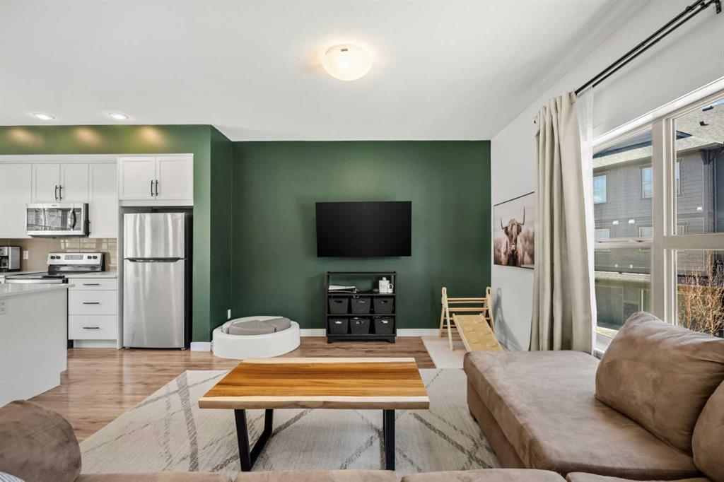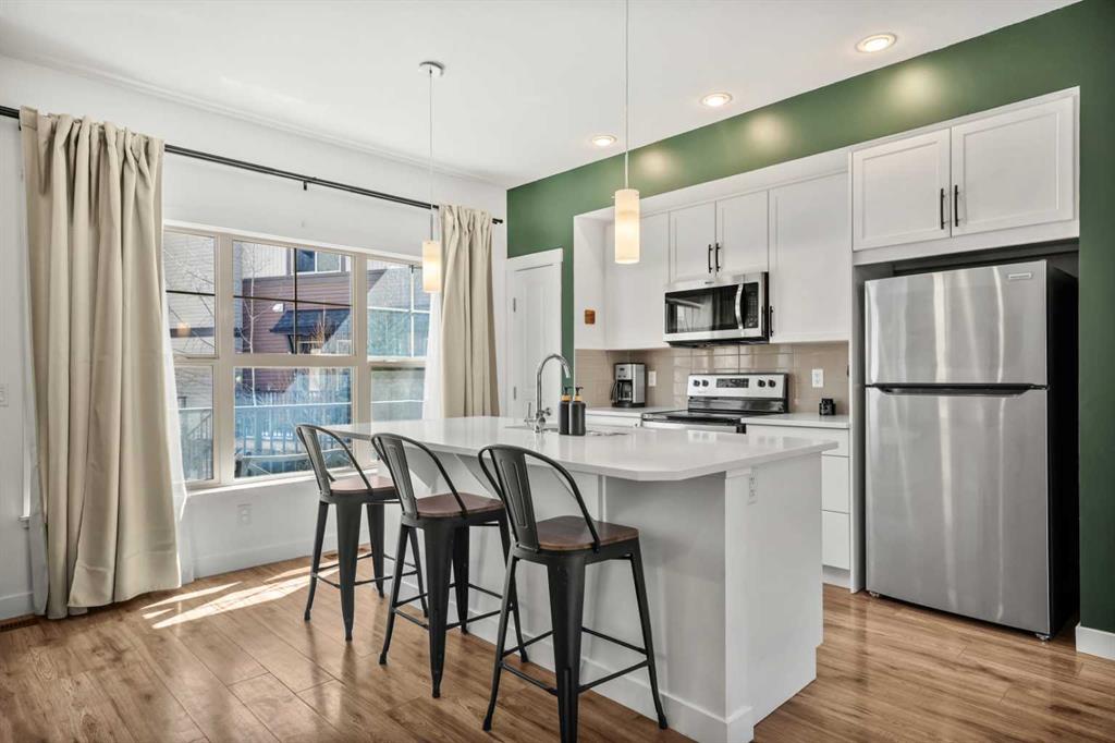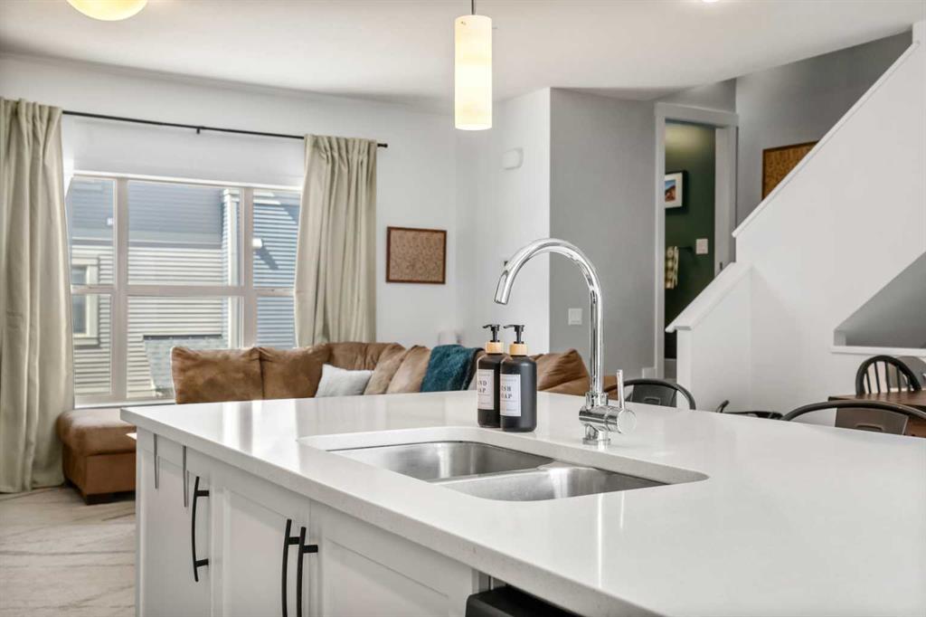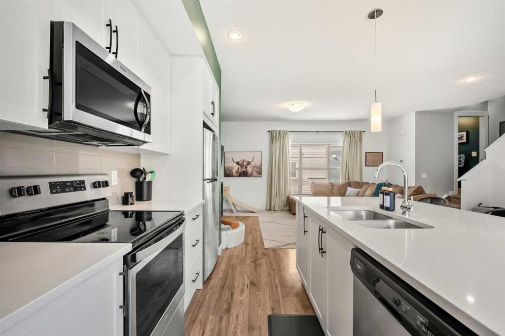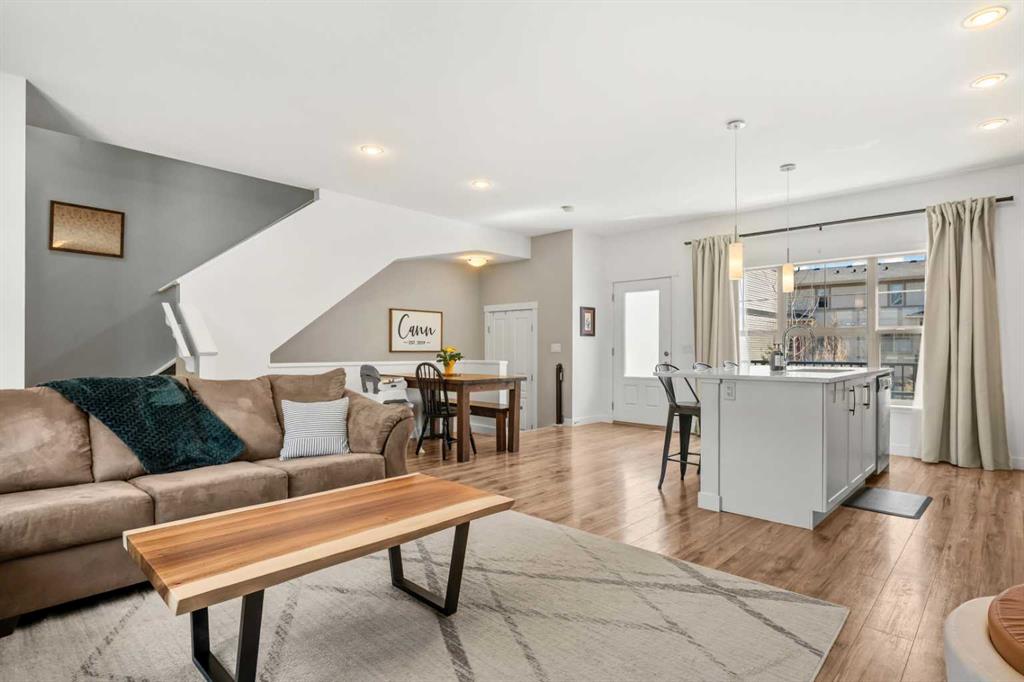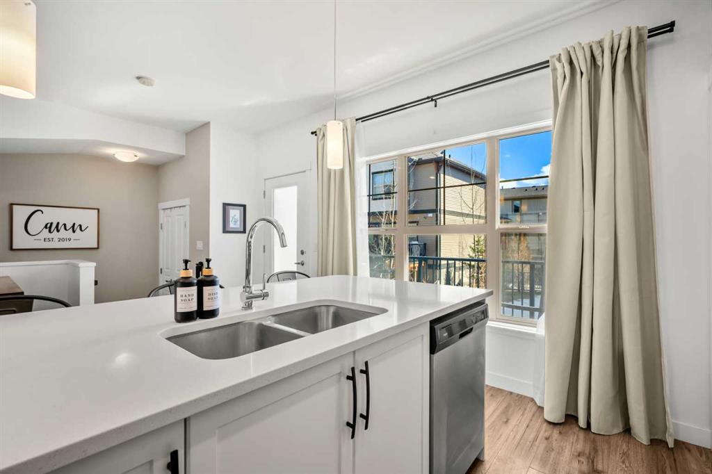 ***OPEN HOUSE, THIS SUNDAY, APRIL 12th, FROM 1-3 PM*** Beautifully cared for end-unit townhome offering 3 bedrooms, 2.5 bathrooms, and a double attached garage in the sought-after community of Heartland. This bright and inviting home features an open concept main floor with expansive windows that flood the living, dining, and kitchen areas with natural light. The modern kitchen is equipped with stainless steel appliances, quartz countertops, a spacious eat-up island and durable laminate flooring throughout the main level – Perfect scratch resistant flooring for this Pet-Friendly unit! Upstairs, you’ll find a generous primary retreat complete with a private 4-piece ensuite and large walk-in closet, along with two additional bedrooms, a full 4-piece main bathroom, and convenient upper level laundry. The sunny south facing deck is perfect for summer BBQs (gas hookup included) and offers direct access via stairs to the green space behind, creating a great extension for outdoor enjoyment and family time. Located just minutes from the amenities of Cochrane, including local cafes, restaurants, and shopping, this home also provides quick access to outdoor recreation with Waiporous, Ghost Lake and the Rocky Mountains only a short drive away. Calgary is approximately 30 minutes east, making this an ideal location for commuters seeking a balance of small-town charm and city convenience. Book your private showing today!