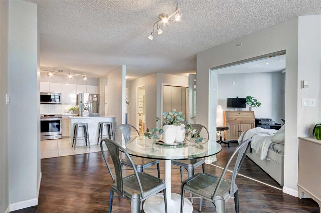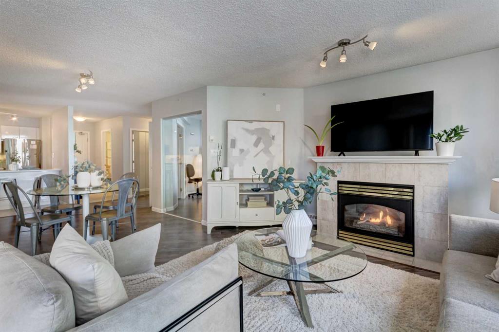 Experience the ultimate fusion of elegance, modernity, and riverside allure at Liberte Eau Claire. Situated in the vibrant heart of downtown Calgary, this exceptional 1,178 sq. ft. sanctuary offers a lifestyle defined by sophistication and seamless convenience. Just a stone’s throw from the enchanting Bow River pathway system and the lush greenery of Prince’s Island Park, this residence invites you to discover a perfect harmony between metropolitan energy and natural tranquility. As you step inside this expansive three-bedroom, two-bathroom gem, you are greeted by an abundance of natural light dancing through generous windows, casting an inviting glow across the open-concept design. The interior is unified by beautiful laminate flooring that is as durable as it is stylish, leading you toward a living room anchored by a cozy gas fireplace—the perfect centerpiece for chilly evenings. Your culinary dreams come to life in the gourmet kitchen, where stunning granite countertops and chic, glossy white cabinetry are beautifully complemented by sleek stainless-steel appliances. A half-island breakfast bar extends the workspace, connecting effortlessly to the dining and lounging areas for a layout that is both functional and social. The thoughtful floor plan positions the bedrooms on opposite sides of the suite, ensuring maximum privacy for residents and guests alike. For those working from home or seeking a quiet retreat, the third bedroom features elegant French doors, allowing it to double as a sophisticated den. Perhaps the most breathtaking feature of this home is the inclusion of two private balconies, with direct access from both the living room and the secondary bedroom. From these elevated vantage points, you can savor “peek-a-boo” views of the shimmering Bow River and the iconic Peace Bridge, offering a serene backdrop for your morning coffee or evening glass of wine. Life at Liberte Eau Claire extends far beyond the four walls of your suite. This pet-friendly building caters to an active lifestyle with a premium array of amenities, including a tennis court, basketball court, well-equipped fitness room, and a relaxing hot tub. For social gatherings, the convenient party room with a full kitchen is ready to host your next celebration. Practicality is never an afterthought, as the property includes titled underground parking and a secure storage locker. Anticipate the future with excitement as the forthcoming Green Line LRT hub positions itself just steps away, while the inner core offers fantastic, shopping, dining and entertaining options. At Liberte Eau Claire, you aren’t just buying a condo; you are securing an urban oasis where every detail is tuned to a symphony of perfection, so book your Showing today!