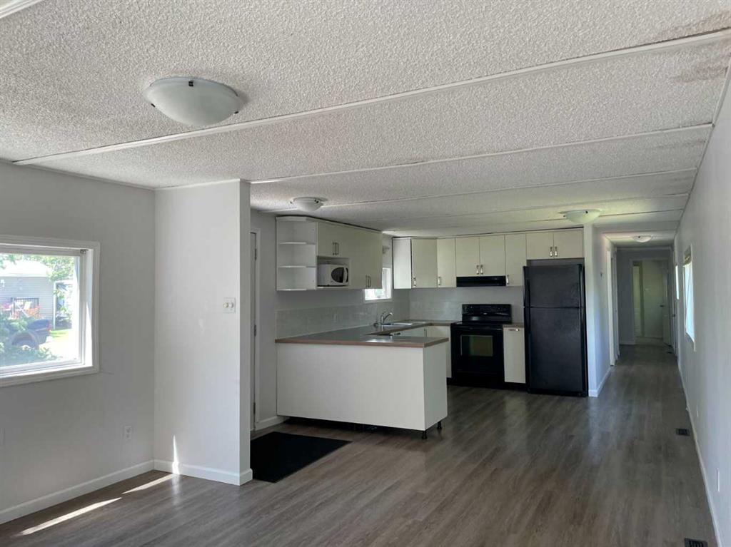 Click brochure link for more details. Handyman special. Quiet neighbourhood, mature trees, close to schools, recreation centre and hospital. A unique feature of this property is you own the land. Think of all the money you could save not paying monthly recurring pad fees. Good sized lot with one curbed side for less shoveling than your typical corner lot. Gravel parking pad & ample street parking plus room to build a garage (pending town approval).