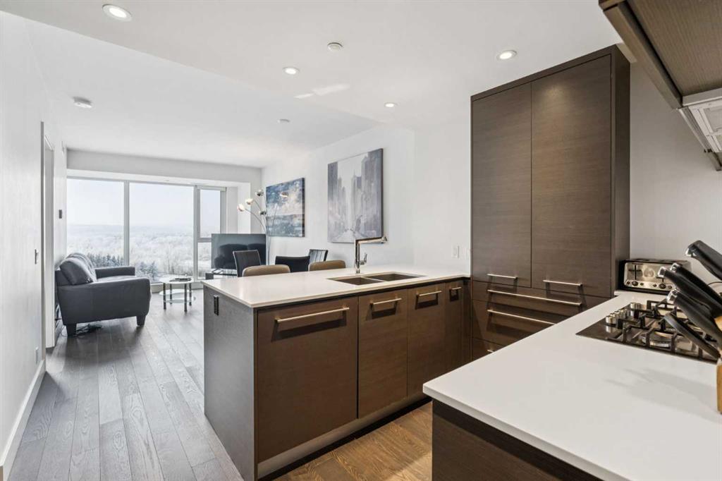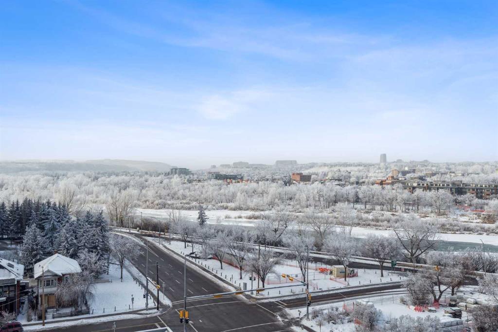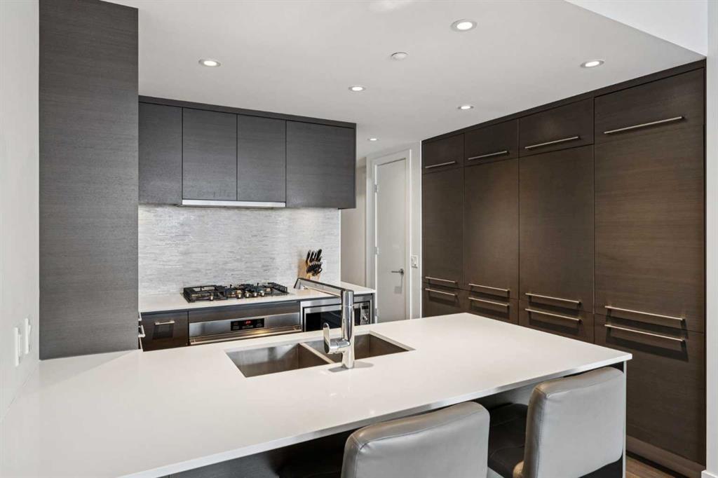 Experience refined urban living with unobstructed river views at Avenue West, one of Calgary’s premier concrete residences in the Downtown West End. This sophisticated 1 Bedroom plus Den with 1.5 Bathroom home just under 700 sq.ft. showcases a bright, open concept design with floor to ceiling windows, built in features and central air conditioning throughout. The chef inspired kitchen is elegantly appointed with full height flat panel wood cabinetry, quartz countertops, a gas range, integrated and stainless steel appliances and a generous island, perfect for both entertaining and everyday living. The serene bedroom offers ample of closet space, tranquil retreat complemented by a sleek, modern 5 piece ensuite and in suite laundry, titled underground parking stall and titled storage locker. Step onto the private balcony and enjoy peaceful city and river surroundings. Avenue West offers residents an exceptional level of service and amenities including a beautifully designed concierge attended lobby, state of the art fitness centre, secure entry and professional management. Ideally located just steps from the Bow River pathway system, LRT, Kensington, Eau Claire and Calgary’s finest dining and boutique shopping, this is elevated downtown living at its finest. Book your private showing today!