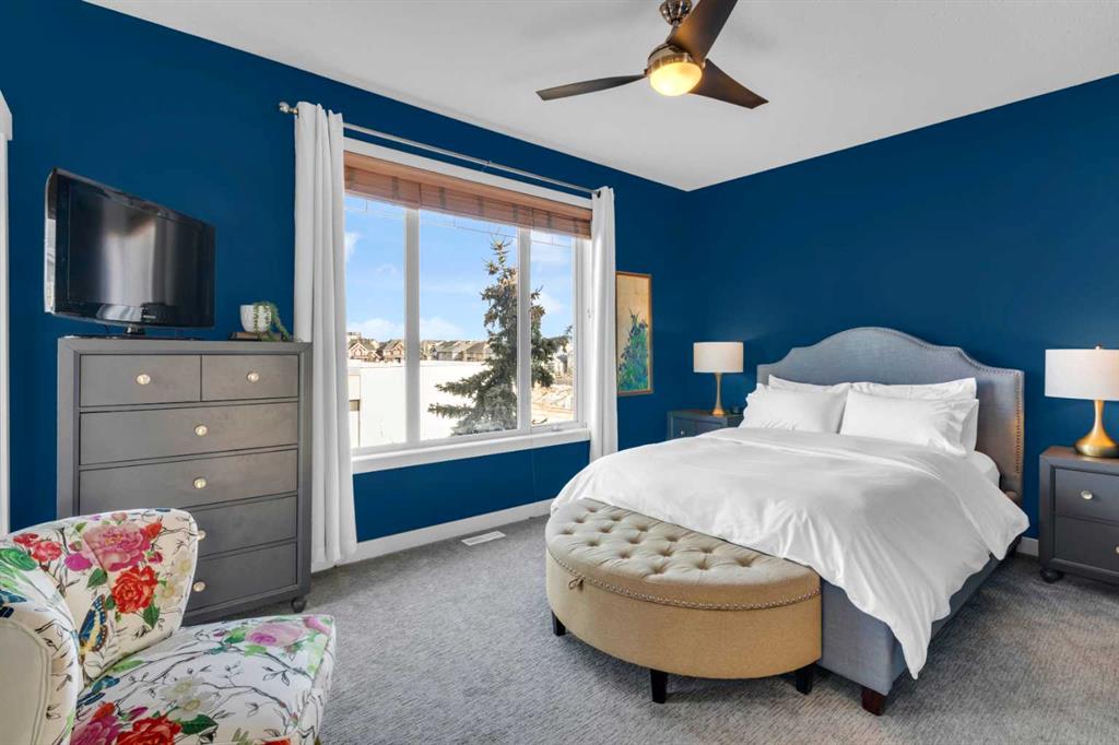 Trendy, professionally renovated, very well kept 2 bedroom, 2.5 bathroom end unit townhome with single attached garage in sought after Wentworth in West Springs. Several modern updates have been done to this beautiful home over the past 4 years including a full kitchen renovation, all 3 bathrooms have been renovated, new flooring throughout including all carpet and tile, new paint, new light fixtures, new garage door opener, and new hot water tank. The bright main level has an excellent layout and features the fully renovated kitchen with grey shaker cabinets, quartz countertops, under cabinet and above cabinet lighting, and heated tile floor. Off of the kitchen is the utility room with storage space and shelving that works well as a pantry. The kitchen opens to the dining room with large windows, and the spacious living room is beside the dining room with plenty of space for furniture and access to the balcony. The corner balcony is large enough for your BBQ and outdoor furniture. Completing the main level is the powder room with laundry and storage closet, and a bright nook that offers the perfect space for a home office or reading area. The upper level has 2 primary suites with the larger of the 2 offering space for a king size bed and side tables, black-out curtains, a balcony, walk-in closet and the fully renovated ensuite. This bathroom features heated tile flooring, a trendy vanity, fully tiled shower/tub, and modern lighting and mirror. The 2nd primary suite has a walk-through closet and an updated 3 piece ensuite bathroom. The convenient attached single garage is oversized, insulated and drywalled, and the full size driveway allows parking for a second vehicle. This well run complex is pet friendly, offers visitor parking within the complex, street parking on Wentworth Drive, and is conveniently located within walking distance to many of the amenities along 85th Street including grocery stores, restaurants, and coffee shops. Great access in and out of the neighbourhood, out to the mountains, to the ring road and to downtown. If you are looking for a renovated home with plenty of natural light, an attached garage in a well run complex, then this trendy home is for you!