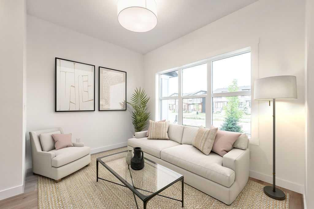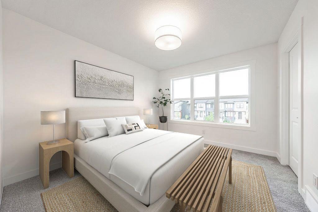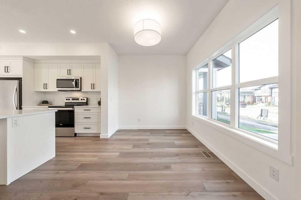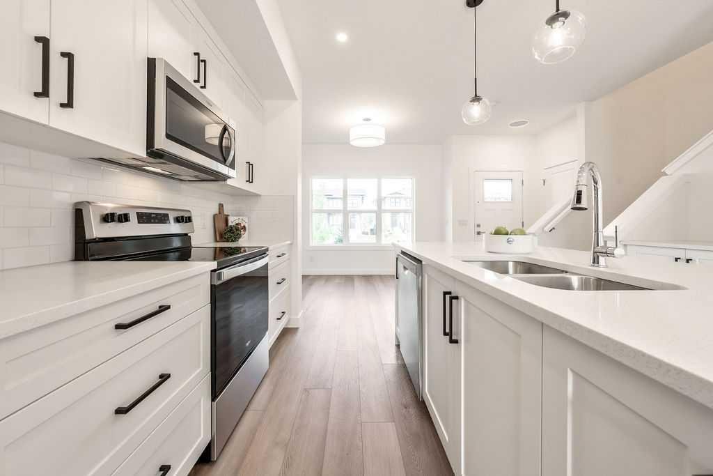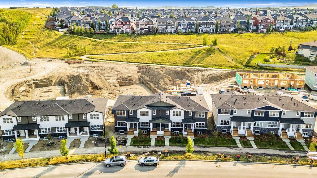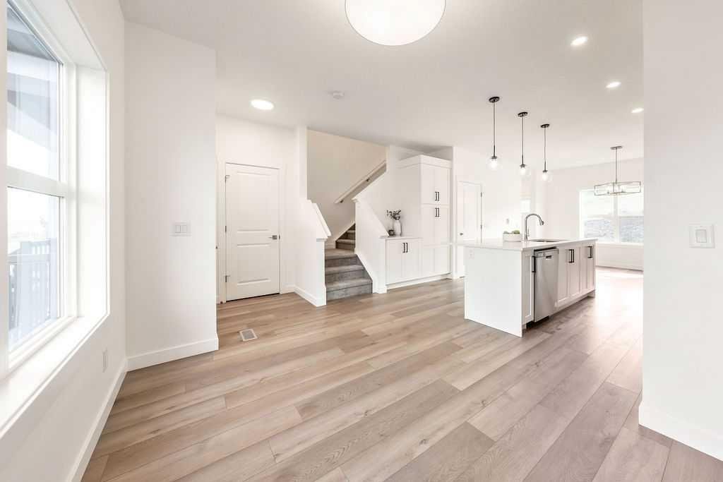 Welcome to this STUNNING, like-new townhome nestled in the sought-after community of River Song! Surrounded by Cochrane’s scenic rolling hills and natural beauty, this thoughtfully designed and impeccably maintained, this home offers the perfect blend of style, comfort, and functionality. The main floor showcases a bright and modern aesthetic, featuring sleek white cabinetry, elegant quartz countertops, stainless steel appliances, and stylish lighting. A large central island anchors the space, while the added coffee bar with extra cabinetry and pantry storage creates a perfect spot to start your mornings. Warm, natural-toned vinyl plank flooring flows throughout, enhancing the open-concept layout that seamlessly connects the kitchen, dining, and living areas—ideal for both everyday living and entertaining. Upstairs, the spacious primary retreat offers a walk-in closet and a well-appointed 4-piece ensuite. Two additional bedrooms provide flexibility for family, guests, or a home office, complemented by a full main bathroom and the convenience of upper-level laundry. The unfinished lower level presents a fantastic opportunity to customize the space to suit your needs. Additional features include central air conditioning for year-round comfort and two parking stalls conveniently located just outside your back entrance. Enjoy the lifestyle this location offers with easy access to the Bow River, nearby pathways, parks, and endless outdoor recreation. River Song is ideally situated with quick access to Highway 22, making mountain getaways effortless, and is just a short drive to Calgary. With schools, amenities, and the Spray Lakes Recreation Centre nearby, everything you need is within reach. Complete with a New Home Warranty, this exceptional home is truly move-in ready. Welcome home!