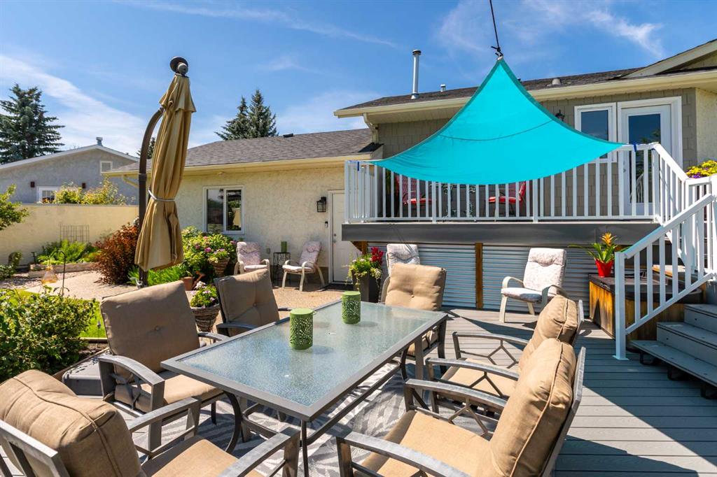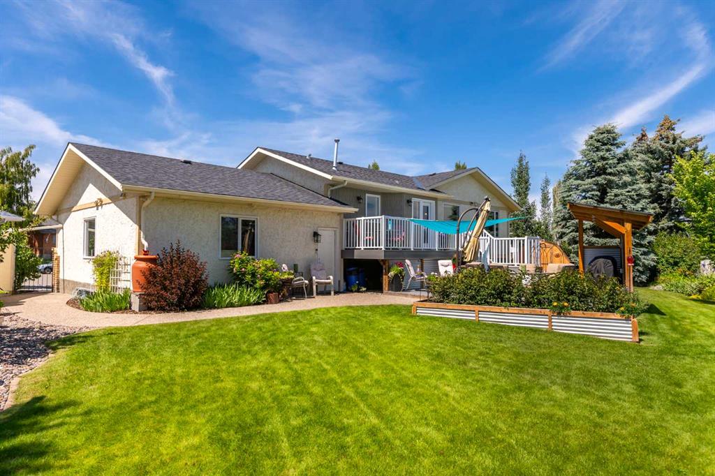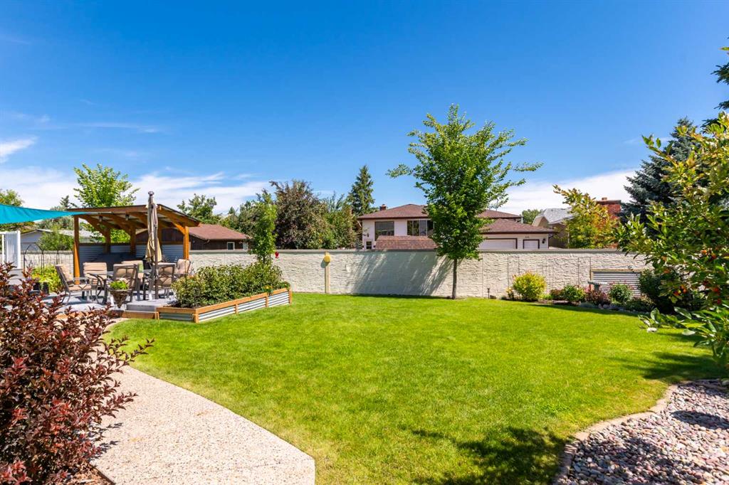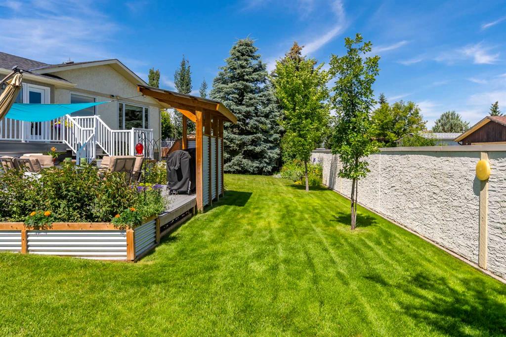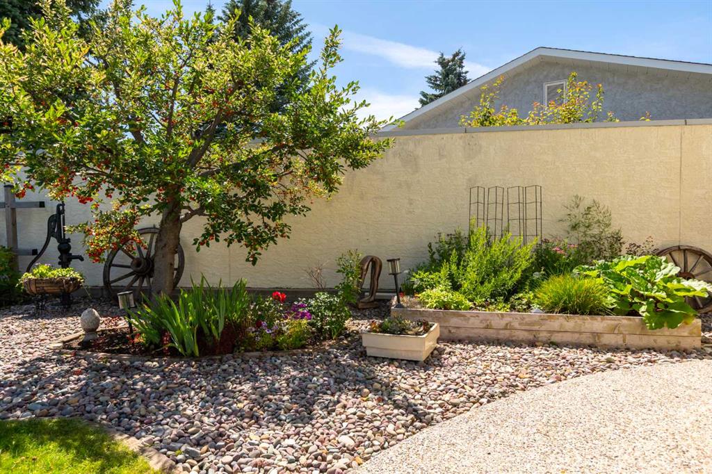 This exceptional bungalow is located on a premium cul-de-sac only steps from Emerson Lake. It is on a rare 10,000 sq. ft. beautifully landscaped and private lot with RV parking and a back lane. The home has an open floorplan and has been extensively renovated with a deluxe kitchen and bathrooms, engineered hardwood throughout the main floor and a central staircase leading to an open and sunlit lower level. The main floor includes a big primary bedroom with lots of closet space and a 3 piece ensuite, a laundry room, and a spacious second bedroom or office. Downstairs there are extra large daylight windows and a comfortable family room with a cozy gas fireplace, two bedrooms with walk-in closets, another full bathroom, a hobby room, and lots of storage space including a secure storage room. The attached 25’ x 25’ garage is heated and has access direct to the lower level and the main floor of the home, and a door to the back yard. Landscaping on this property has made the backyard a beautiful oasis. It has two decks and a patio and includes a covered BBQ area. There are many mature perennials and trees, and a solid stucco fence for privacy. Extras in this home include a stucco exterior, triple pane windows, granite counters throughout, a bluestar range, trex decking and air conditioning. Click the multimedia tab for an interactive virtual 3D tour, additional photos and floor plans.