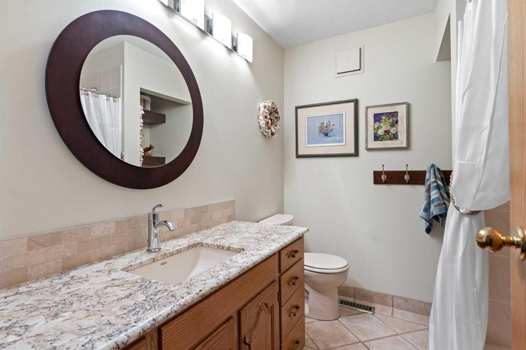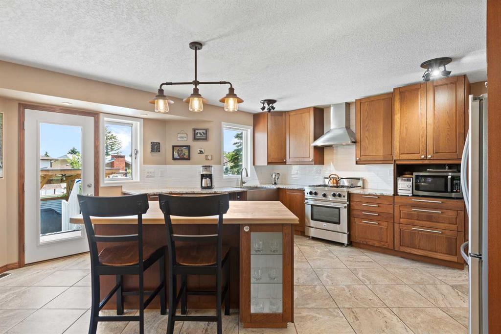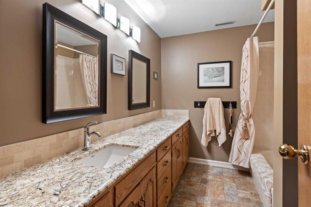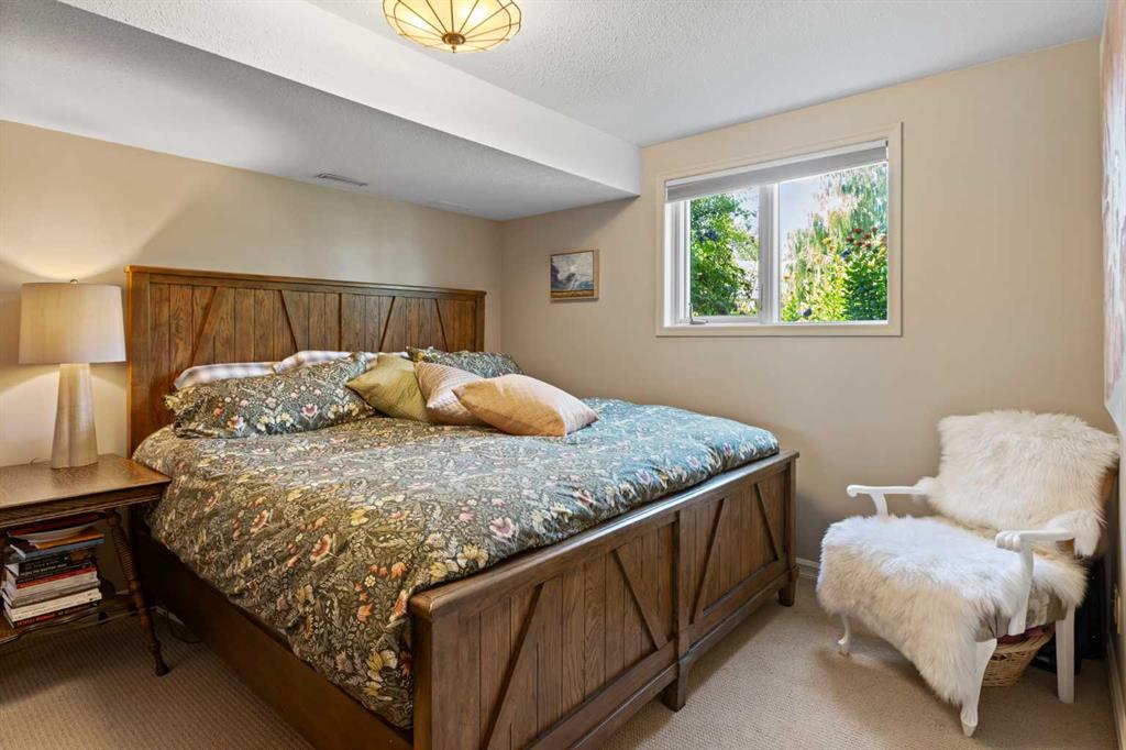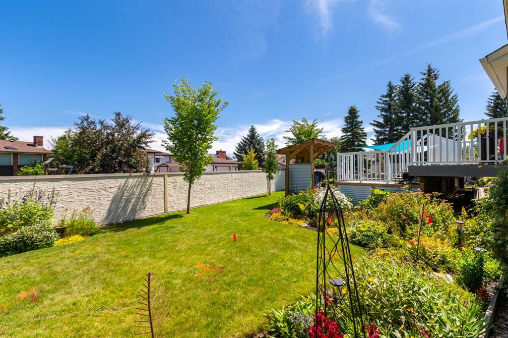 This exceptional bungalow is located on a premium cul-de-sac only steps from Emerson Lake. It is on a rare 10,000 sq. ft. beautifully landscaped and private lot with RV parking and a back lane. The home has an open floorplan and has been extensively renovated with a deluxe kitchen and bathrooms, engineered hardwood throughout the main floor and a central staircase leading to an open and sunlit lower level. The main floor includes a big primary bedroom with lots of closet space and a 3 piece ensuite, a laundry room, and a spacious second bedroom or office. Downstairs there are extra large daylight windows and a comfortable family room with a cozy gas fireplace, two bedrooms with walk-in closets, another full bathroom, a hobby room, and lots of storage space including a secure storage room. The attached 25’ x 25’ garage is heated and has access direct to the lower level and the main floor of the home, and a door to the back yard. Landscaping on this property has made the backyard a beautiful oasis. It has two decks and a patio and includes a covered BBQ area. There are many mature perennials and trees, and a solid stucco fence for privacy. Extras in this home include a stucco exterior, triple pane windows, granite counters throughout, a bluestar range, trex decking and air conditioning. Click the multimedia tab for an interactive virtual 3D tour, additional photos and floor plans.