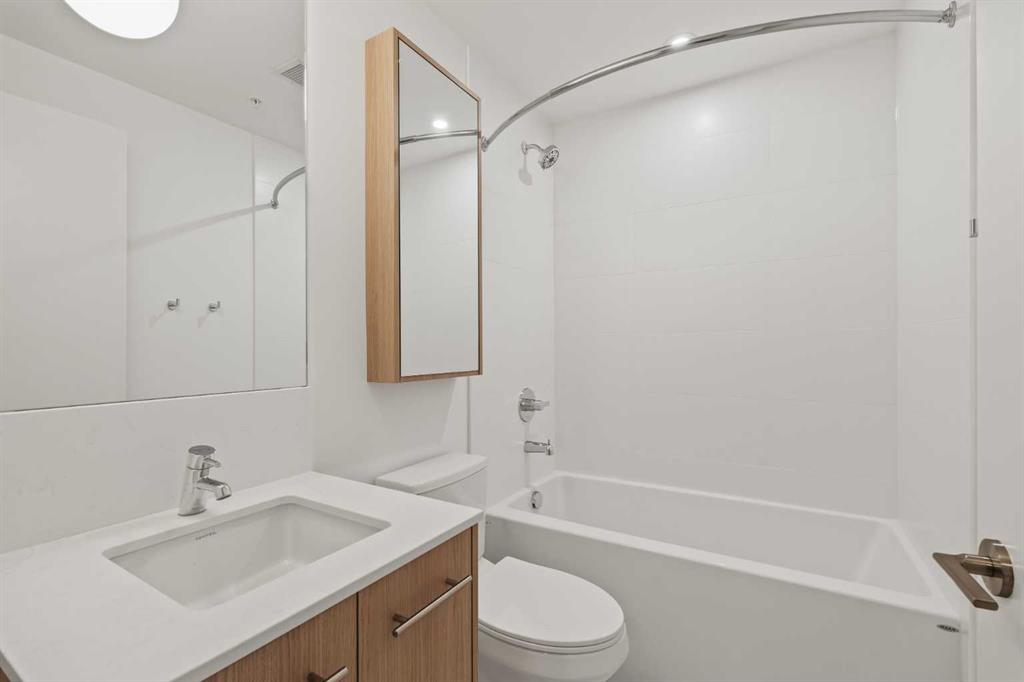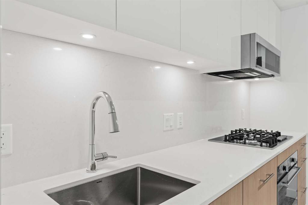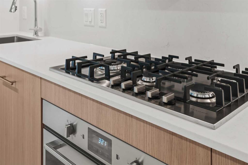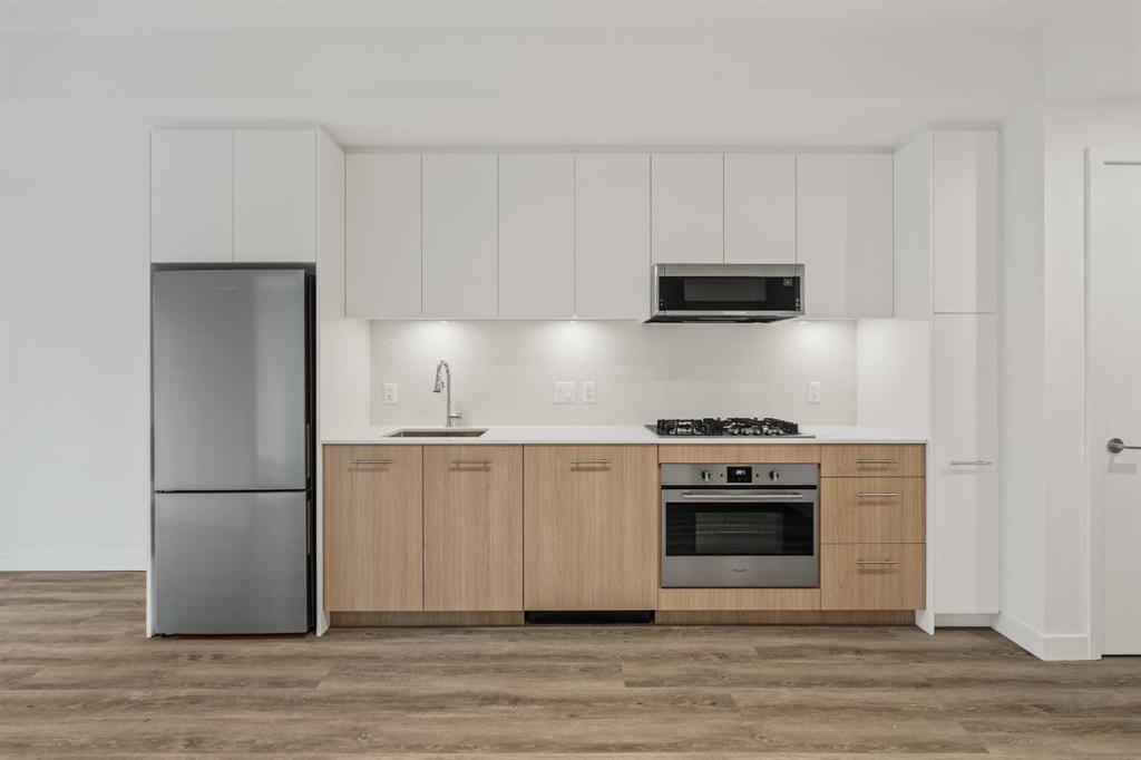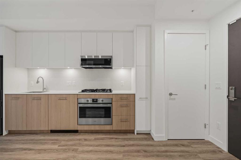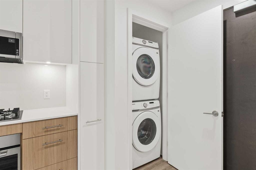 The open floor plan makes the most of every square foot, and you’ll love the stylish finishes throughout — from the luxury vinyl plank flooring to the modern kitchen with quartz countertops. There’s also full-sized in-suite laundry and a titled underground parking stall, which is a rare find for a 1-bedroom in this building.