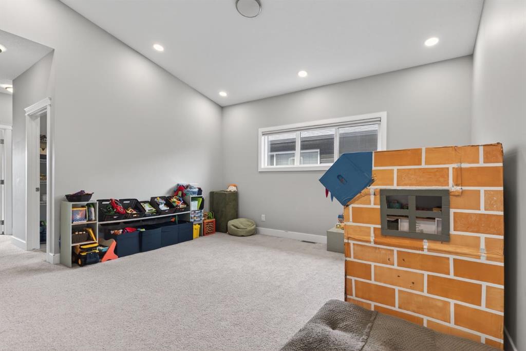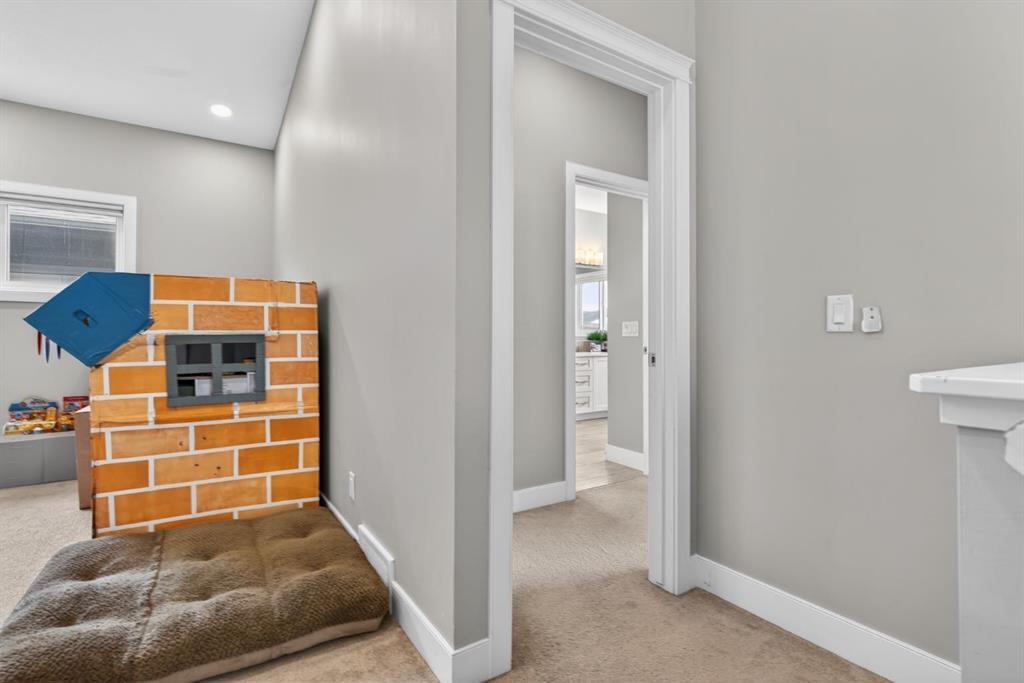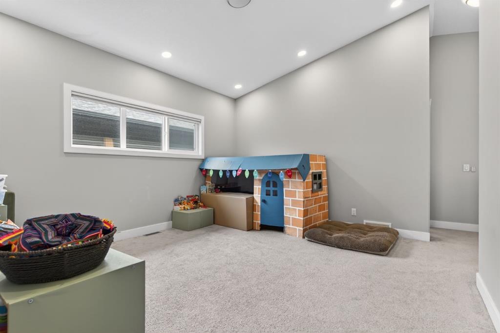 Upstairs, four spacious bedrooms with 9-foot ceilings are complemented by a central bonus room with vaulted ceilings — an ideal secondary living space. The 5-piece main bathroom includes dual sinks and a tub/shower combination.