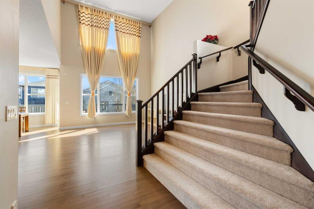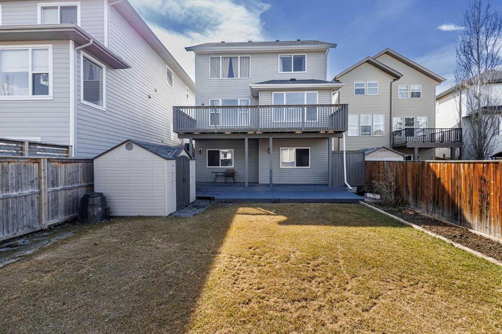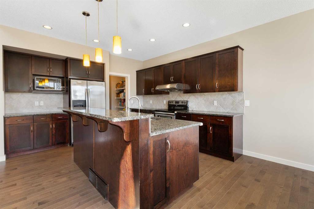 This stunning, immaculately maintained 2-storey walkout home offers exceptional space, functionality, and abundant natural light throughout. Featuring 3+1 bedrooms and 3.5 bathrooms, this executive-style residence boasts gleaming hardwood floors and 9’ ceilings on the main level. The bright and open main floor showcases a spectacular family room with soaring 18’ ceilings, a cozy gas fireplace, and massive windows that flood the space with natural light. The gourmet kitchen is equipped with granite countertops, stainless steel appliances, a central island with raised eating bar, and a convenient walk-through pantry. A spacious dining area provides direct access to the full-width deck, perfect for entertaining. A den and 2-piece bath complete the main level. Upstairs, you’ll find a generous loft area, a luxurious primary retreat featuring a 5-piece en-suite with double vanity, soaker tub, separate shower, and a large walk-in closet. Two additional well-sized bedrooms and a 4-piece main bath complete the upper level. The professionally developed walkout basement includes a fully finished illegal suite with a separate entrance, 9’ ceilings, and durable laminate flooring throughout. This level features a large living room, full kitchen with island, a fourth bedroom, a 4-piece bathroom, and ample storage space. Step outside to a beautifully landscaped, fully fenced backyard offering excellent privacy, along with a newer full-width covered patio, ideal for year-round outdoor enjoyment. Located on a quiet crescent just minutes from schools, parks, and playgrounds, with convenient access to public transit (including Route #8 to the University of Calgary and #301 express downtown). Close to shopping, Superstore, recreation facilities, library, theatre, and all major amenities. Easy access to Stoney Trail, Deerfoot Trail, and the airport. Recent upgrades include: Roof (2025), Gutter (2025), Downspouts (2025), Sidings (2025), Dishwasher (2024), dryer (2024), Hardwood flooring (2023), Water Filter System (2022), and Air Conditioner (2021).