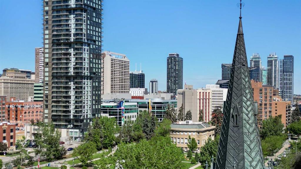 This stylish 1-bedroom condo in the highly regarded Calla building offers an exceptional urban lifestyle in the heart of downtown Calgary. Ideally located directly across from Beaulieu Gardens and the historic Lougheed House, the building provides a peaceful, park-adjacent setting while remaining just steps from Calgary’s downtown core, Stampede Grounds, public transit, dining, shopping, and nightlife. The Calla is a well-managed, concrete-constructed building known for its quality and quiet living environment. Residents enjoy an elegant lobby and an impressive selection of amenities, including a fully equipped fitness centre, yoga studio, concierge service, guest suite, and secure bike storage. Inside, the condo features 9-foot ceilings, central air conditioning, and floor-to-ceiling south-facing windows that flood the space with natural light and showcase beautiful city views, including front-row views of the Calgary Stampede fireworks. The modern kitchen is thoughtfully designed with full-height cabinetry, quartz countertops, stainless steel appliances, and a peninsula with breakfast bar, offering both functionality and style. The kitchen flows seamlessly into the dining area and oversized living room, creating an inviting space for everyday living and entertaining. The living room opens onto a large private balcony, ideal for summer barbecues, outdoor dining, or relaxing while taking in the urban skyline. The spacious bedroom continues the bright, open feel with large windows and dual closets providing ample storage. A well-appointed 4-piece bathroom features contemporary finishes and low-flush plumbing. Additional conveniences include in-suite laundry, a titled underground parking stall, and an assigned storage locker. This property presents an outstanding opportunity for low-maintenance, upscale downtown living in one of Calgary’s most desirable locations.