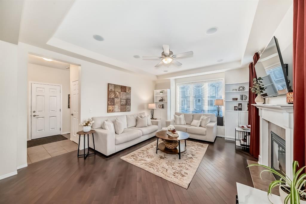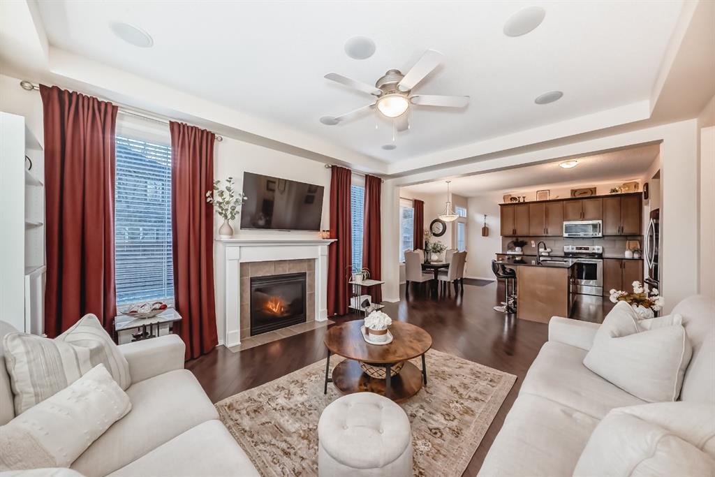 **OPEN HOUSE JAN 18 2-4PM** Situated on a sun-filled, SW facing corner lot in the desirable community of Windsong, this exceptionally well-maintained home offers outstanding curb appeal and 1952 sq ft of thoughtfully designed living space, ideal for families. From the moment you arrive, pride of ownership is evident, complemented by lush landscaping with numerous established perennials that enhance the home’s curb appeal and outdoor charm. Upon entry, you are welcomed by a bright, open foyer featuring a stylish wallpaper accent wall and an abundance of natural light. Just off the entrance is a main floor office with a pleasant view of the streets—perfect for working from home. French doors provide privacy when needed while still allowing light to flow through the space, creating a functional yet elegant work environment. The open-concept main floor is highlighted by 9’ ceilings and diagonally laid hardwood flooring, offering both warmth and visual appeal. The living room is bright and inviting, featuring multiple windows, charming built-in bench seating overlooking the street, and in-ceiling speakers for an enhanced entertainment experience. The space is anchored by a beautiful fireplace with a classic mantle and tile surround, making it the perfect gathering spot for family and guests. The adjacent spacious dining area easily accommodates a large table, ideal for everyday meals and entertaining. The kitchen is both stylish and highly functional, showcasing rich espresso cabinetry, granite countertops, and SS appliances. A large central island with seating provides ample prep space and a casual dining option, while the pantry ensures plenty of storage for a busy household. Upstairs, the home offers 4 generously sized bedrooms. The primary retreat is spacious and inviting, complete with a dedicated seating area, walk-in closet, and a 4pc ensuite. Three additional large bedrooms share a well-appointed 4pc main bathroom, and a convenient upper-level laundry room with countertop and built-in shelving adds everyday ease. The SW facing backyard is a true highlight, beautifully landscaped with numerous perennials and designed for both relaxation and entertaining. Enjoy a large ground-level deck off the kitchen, a gazebo complete with lighting and sun shades, and a second designated dining area for outdoor meals. Two gas lines are available—perfect for a BBQ and a fire table. The yard also includes a storage shed, gated access, and receives sunlight throughout the day. The unfinished basement provides excellent future potential, featuring a bathroom rough-in and ample space to add additional bedrooms, a recreation room, or a home gym if desired. Completing the property is a double attached garage, equipped with upper cabinets and shelving for excellent storage and organization. Ideally located close to Windsong Heights School (K-9), Chinook Winds Park, Splash park, and pathways, this home offers the perfect blend of location, functionality, and lifestyle.