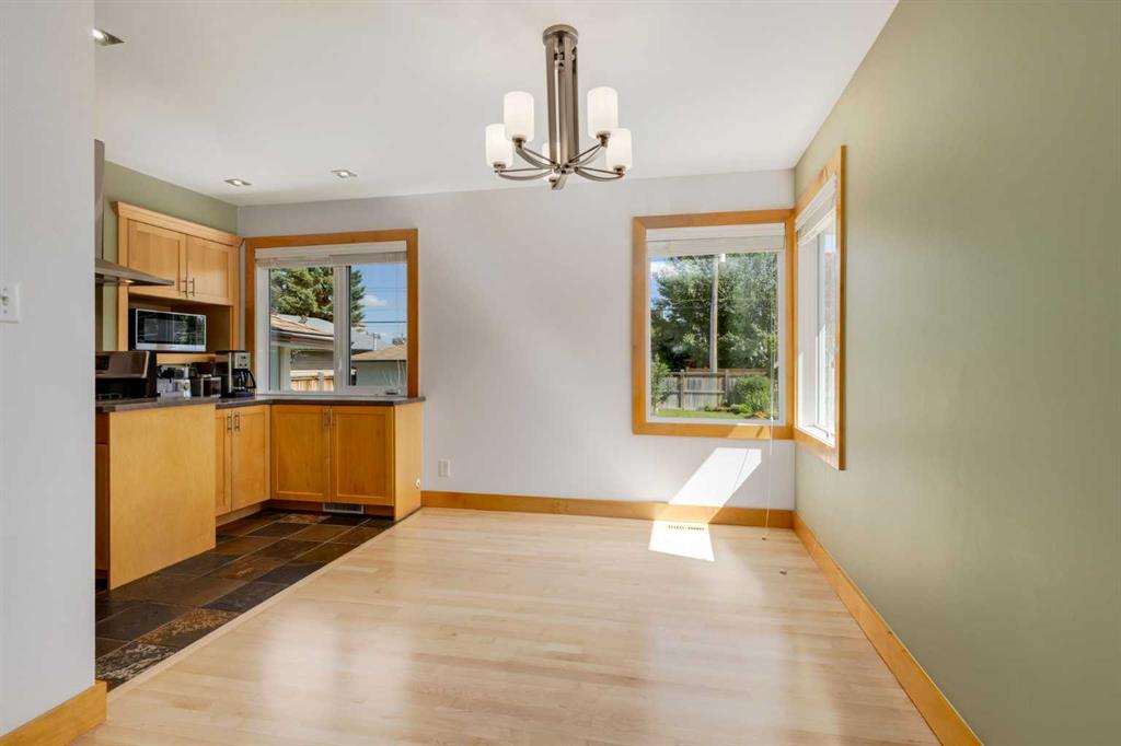 Step inside to a bright and inviting main floor. The spacious living and dining area are ideal for everyday comfort as well as hosting family and friends. The modern kitchen features custom-built maple cabinetry, slate flooring, and plenty of counter space with a functional layout that flows seamlessly into the dining area. The updates continue throughout with maple hardwood flooring on the main level and slate tile in the kitchen, bathroom, and entryways, adding both beauty and durability.