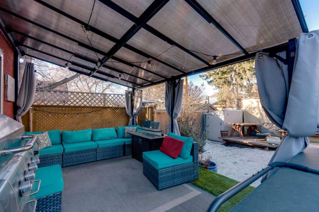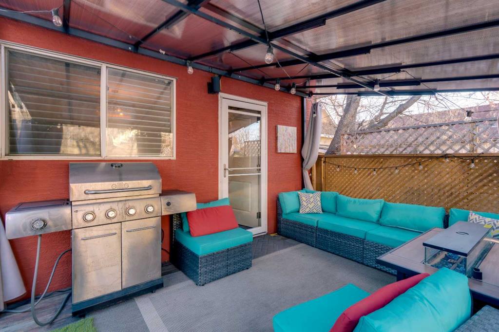 The primary bedroom includes a walk-in closet, electric fireplace, and direct access to the backyard. The stunning spa-like bathroom it features a soaker tub and steam shower. A second bedroom completes the main level. The basement provides additional storage space and laundry. Outside, the private, tree-filled backyard is an urban oasis with a deck and gazebo, peek-a-boo city views, and a saltwater hot tub (only 2 years old). The yard is landscaped with raspberries, saskatoon berries, lilacs (front and back), rose bushes, cherry trees out front, and garden boxes. Additional updates and features include hardwood flooring, new front door, 100-amp electrical service, high-efficiency furnace, new air conditioning (1 year old), and a large front deck. Move in and enjoy this special Ramsay character home in an unbeatable inner-city location!