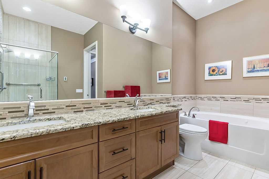 Luxury semi-detached VILLA BUNGALOW with a fully developed walkout basement, perfectly located backing onto a serene, landscaped greenspace in an exclusive and sought after 55+ community. Every detail of this residence has been thoughtfully planned to give a sophisticated blend of elegance, comfort and effortless living. The open concept design is highlighted by walls of oversized windows and transoms that rise nearly to the ceiling, flooding the home with natural light and offering gorgeous outdoor views. The kitchen is a showpiece, appointed with a premium SUB-ZERO FRIDGE, PROFESSIONAL GRADE WOLF STOVE AND BOSCH DISHWASHER. Rich granite countertops, extensive custom cabinetry and a generous walk in pantry complete this exceptional space. Step directly onto the expansive deck to enjoy peaceful mornings or elegant evenings overlooking the beautifully landscaped greenspace. The primary suite is a private sanctuary, featuring a vaulted ceiling and a spa inspired ensuite with a large sized double vanity, soaker tub and an oversized glass shower. The professionally finished walkout lower level elevates the home’s living space with a dramatic fireplace feature wall, two spacious bedrooms, a full four piece bath, in floor heating and garden doors that open to a covered patio — ideal for seamless indoor-outdoor living. A charming front verandah is the perfect space to relax and enjoy the peace and quiet of this exceptional community. This remarkable villa is an opportunity to own an UPSCALE RESIDENCE WITH PREMIUM FINISHES and an uncompromising lifestyle. NOT A CONDO – NO CONDO FEES (Homeowners Association).