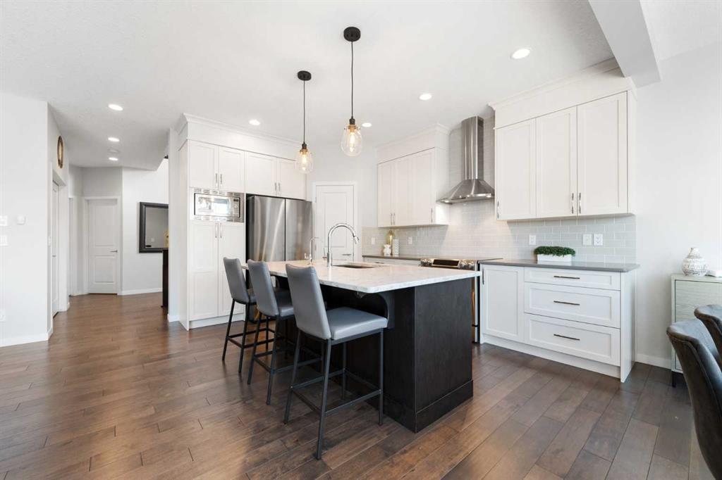 Rare opportunity to own a like-new, original-owner home in the highly desirable community of New Brighton. This turn-key, mint-condition property offers 3+1 bedrooms, 2.5 bathrooms, and a smart, open-concept layout that effortlessly balances comfort, style, and everyday functionality. A bright, welcoming foyer leads into the heart of the home—an expansive white kitchen featuring full-height cabinetry, quartz countertops, modern grey subway tile, a large center island, and a whole-home reverse osmosis water filtration system. The adjoining great room showcases a cozy gas fireplace and generous dining space, ideal for both family living and entertaining. A main-floor office or flex room, mudroom, and powder room add everyday convenience. Upstairs, a sun-filled bonus room provides versatile space for relaxing or working from home. The spacious primary suite offers a peaceful retreat with a walk-in closet and spa-inspired ensuite complete with dual vanities and an oversized soaker tub. Two additional bedrooms, a full bathroom, and upper-level laundry complete the floor. The unfinished basement provides ample storage, home gym space, and excellent future development potential. Outside, enjoy a fully fenced, west-facing backyard with stunning landscaping, a tranquil water feature, garden beds, a deck, and a lower patio—perfect for summer evenings and entertaining. Additional highlights include central air conditioning, a water softener, a 1-year-old hot water tank, 3-year-old A/C, irrigation system (front and back), timeless designer finishes, and a large front yard with potential RV parking. Ideally situated on a quiet street, the home is close to parks, pathways, and transit, and within walking distance to St. Marguerite School. Enjoy quick access to recreation at the nearby New Brighton Athletic Park and convenient shopping and dining along 130th Avenue SE Shopping District. Commuting is effortless with easy access to Stoney Trail. Residents also enjoy exclusive access to the New Brighton Club, offering a splash park, skating rink, sports courts, and year-round community programs. This exceptional home delivers the perfect blend of luxury, quality, and family-friendly living.