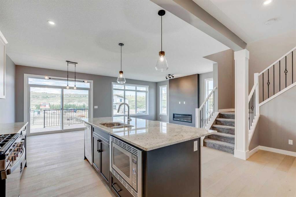 *** Main floor features include: | Open layout with 9′ ceilings | 8-foot interior doors throughout the main floor | Beautiful engineered hardwood flooring | Bright and spacious dining area | Stylish electric fireplace | Gorgeous quartz countertops throughout | Builder’s grade appliance package included