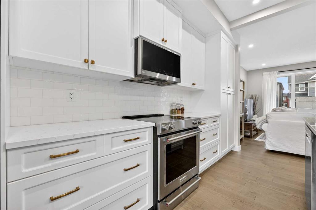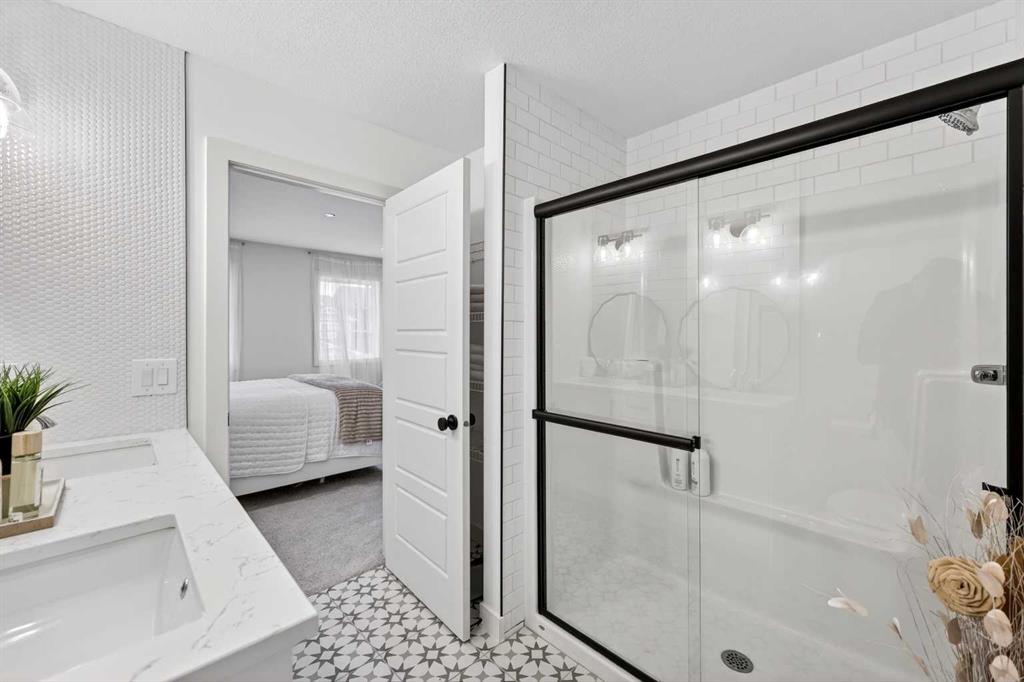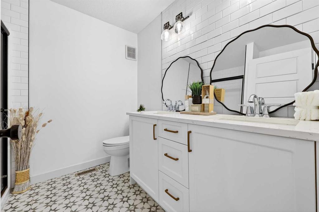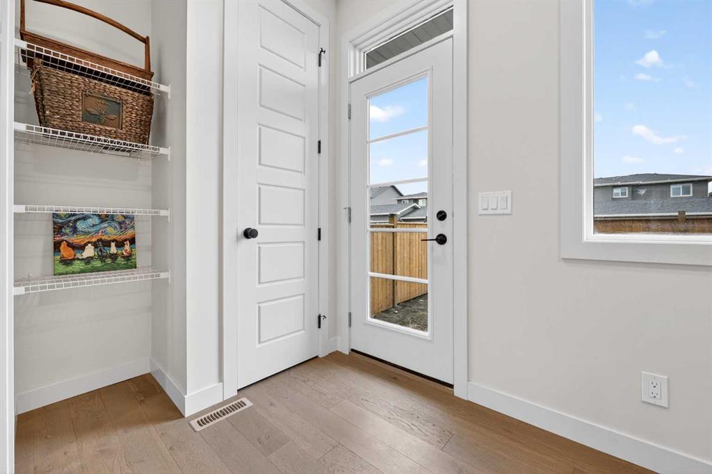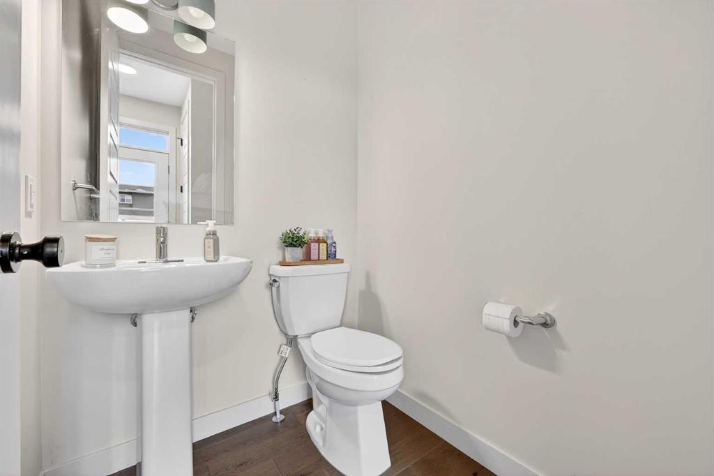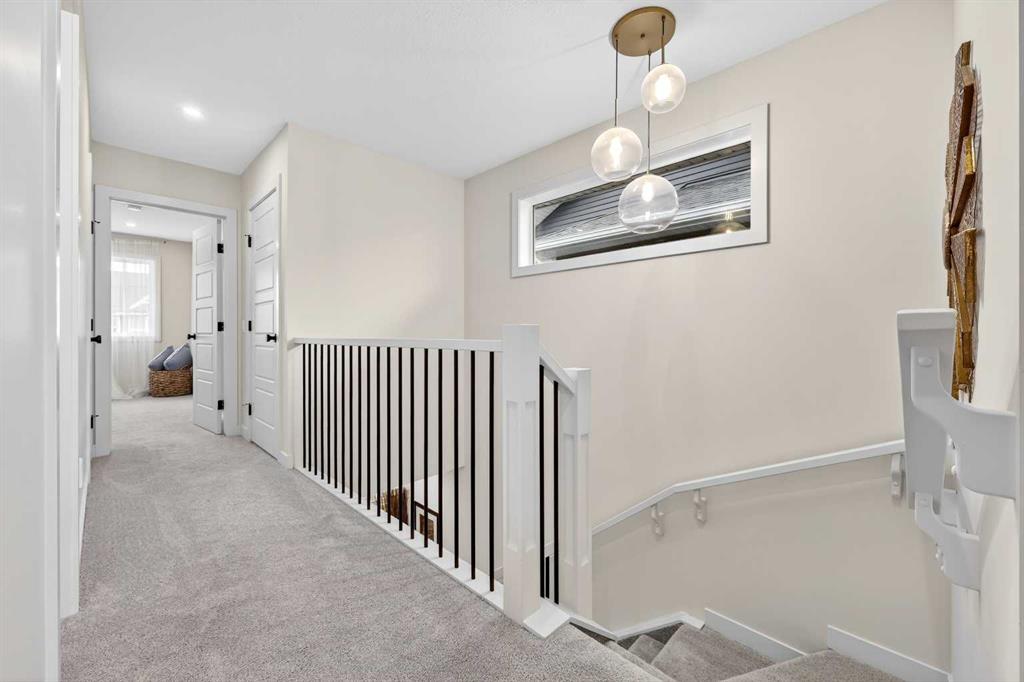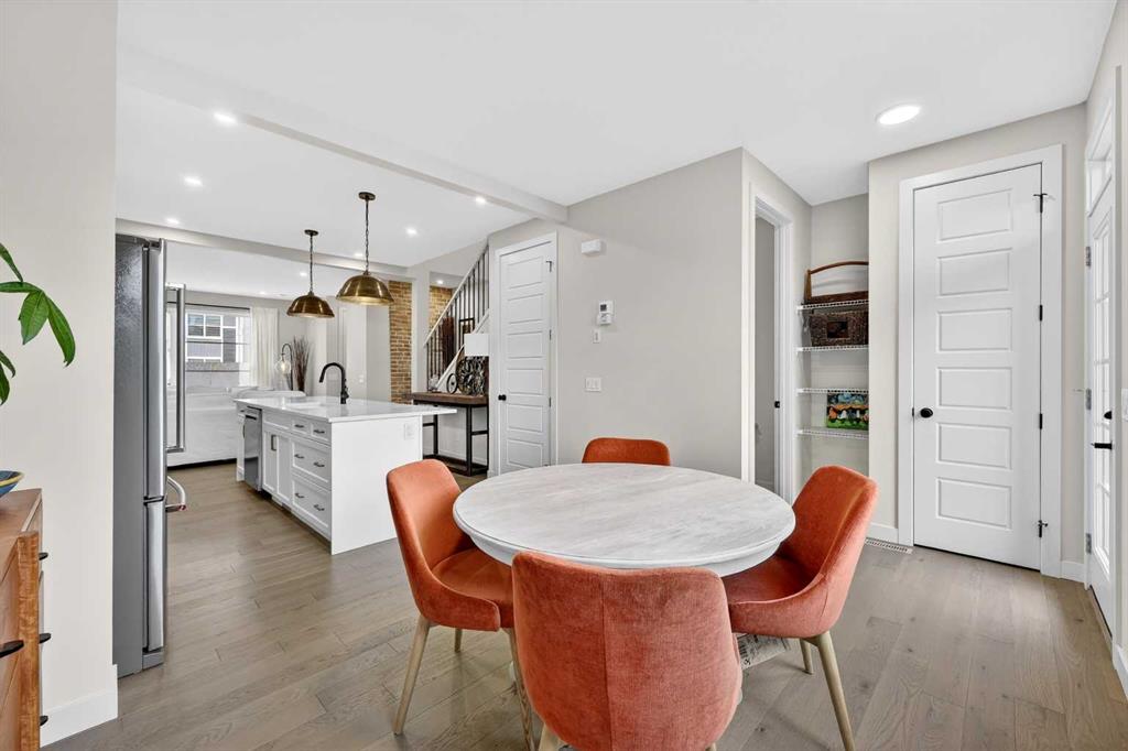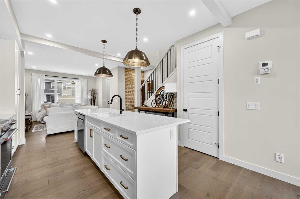 Modern design meets everyday function in this thoughtfully upgraded duplex located in one of Airdrie’s growing southwest communities. A covered front patio sets a welcoming tone while creating a comfortable space to enjoy morning coffee or unwind at the end of the day. Inside, an open-concept layout with 9′ ceilings and 8′ doors balances connection and separation, allowing daily routines and entertaining to flow with ease. Engineered hardwood flooring runs underfoot, bringing warmth and durability to the main level. Natural light pours through oversized windows, brightening the living area and drawing attention toward the heart of the home. Culinary creativity finds its place in a well-appointed kitchen where crisp white cabinetry, quartz countertops, timeless subway tile and an upgraded stainless steel appliance package come together around a central island designed for casual meals and conversation. Adjacently, the dining area keeps gatherings connected while maintaining a defined space for everyday use. A powder room completes the main level with practical convenience for guests. Upstairs, a calm and comfortable primary retreat delivers both style and function with dual sinks, an upgraded comfort-height vanity, chic tilework and an oversized shower that enhances daily routines. Two additional bedrooms provide flexibility for family, guests or a dedicated workspace. A full bathroom on this level carries through the same thoughtful finish selections, while upper-level laundry eliminates the need to carry loads between floors. Out back, a fully fenced yard creates privacy and room to enjoy outdoor living, whether relaxing, gardening or letting pet’s roam. Rear lane access leads to a concrete 2-car parking pad, offering convenient off-street parking without compromising yard space. Life here connects you to a quieter pace without giving up access to everyday essentials. Parks, pathways, nearby pickleball, tennis, and basketball courts add options for recreation and community connection.