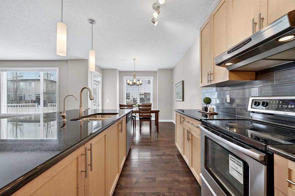 OPEN HOUSE SAT. 2-4. This stunning Broadview-built two-storey home is located in the highly sought-after community of Silverado and offers an impressive 3,350 sq. ft. of fully developed living space with FOUR BEDROOMS AND A FINISHED BASEMENT. The open-concept main floor showcases 9’ ceiling, gleaming hardwood floors, wide hallways, a bright and spacious living room filled with south-facing windows, and a chef’s kitchen featuring custom maple cabinetry, granite countertops, and a large island ideal for both everyday living and entertaining. From the dining area, step out onto a massive two-level deck overlooking a fully fenced backyard with cobblestone pathways, BBQ gas line, and a beautiful vegetable garden. Upstairs, the bright and spacious bonus room is ideal for family gatherings, while the south-facing primary bedroom boasts a luxurious ensuite with double vanities, separate shower, and deep soaker tub. Two additional generously sized bedrooms, a 4-pc full bath and a convenient computer/work area complete the upper level. The fully finished basement with 9’ ceiling offers exceptional versatility with a large recreation area featuring a mirrored wall for a gym or dance studio, an additional bright bedroom with a south-facing window, a den perfect for a home office or hobby room, and a 4-pc full bathroom. Thoughtfully maintained and upgraded, this home features a new roof and siding (2022) and a new double garage door (2025). Ideally located within walking distance to three schools and pathways, just a 7-minute drive to shopping, the library, and the YMCA, and with the world-renowned Spruce Meadows Equestrian Centre as its western neighbor, this home also offers quick access to Stoney Trail and Macleod Trail, providing an easy commute to the mountains —making it a rare opportunity not to be missed.