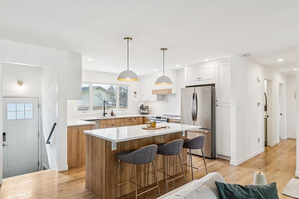 Incredible proximity to the incredible Fish Creek AND a gorgeous, renovated bungalow! Parkland is known for its access to nature, community feel, low-density development with wide lots, amenities like Park96 Community Centre Park and a K-6 Public School & Catholic School both in walking distance! This bungalow was lovingly renovated over the past five years by owners with impeccable taste! Opening up the great room to allow for modern-day living has created an inviting and functional space. The living room can fit the most oversized, comfy couch and features a wood-burning fireplace. The dining room has a thoughtful built-in with quartz counters and a stylish light fixture. The wood-and-white kitchen is a showstopper with central island, designer tile work, quartz counters, sink overlooking the backyard, soft-close cabinetry, induction range, fridge w/ ice & water. This is the heart of the home where memories with friends and family are made! With three bedrooms up, this home can easily accommodate a family or a work-from-home setup. The main bathroom includes shower niche, arched mirror, linen closet and earthy colour tones. The primary suite has great closet built-ins, new ceiling fan and 3-piece ensuite with bidet! The lower level has multiple areas to make your own – media area, rec area with fireplace, enclosed den/gym, 4th bedroom and full bath. And now, let’s get to the yard! With SW exposure, this yard basks in sun all day – amazing for our long summer nights in Calgary! Fully fenced so it’s ready for your kids & pets, newer ground-level patio, oversized rear gate to allow for RV parking and a huge 23’x24′ garage that fits a full-sized truck! This quiet street is the perfect place to call home – prepare to fall in love!