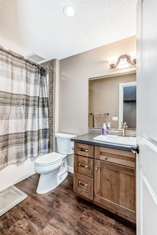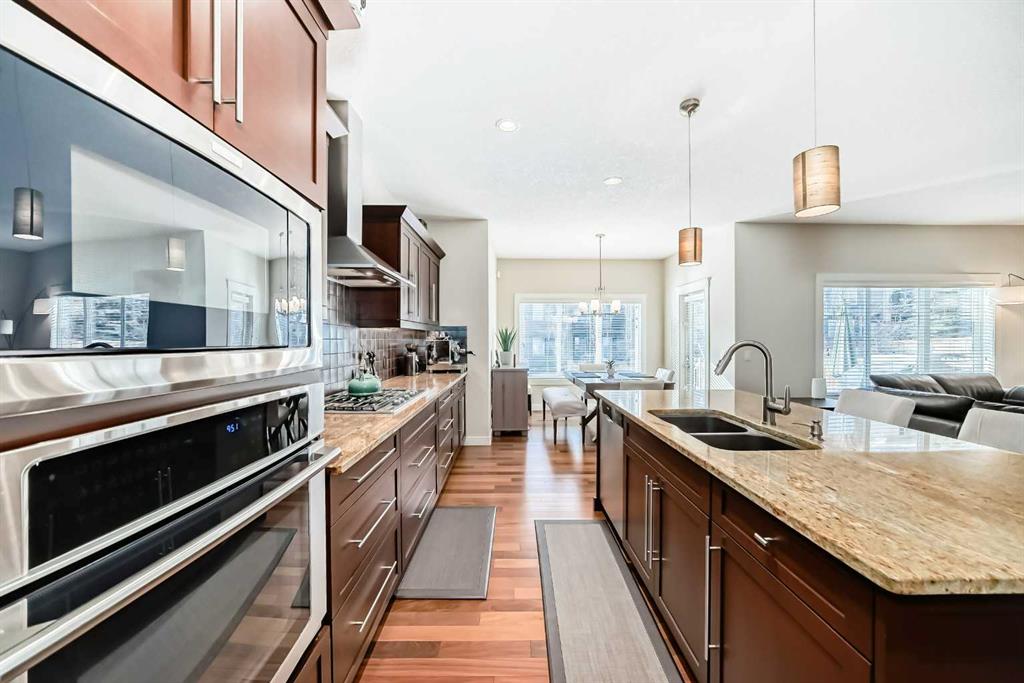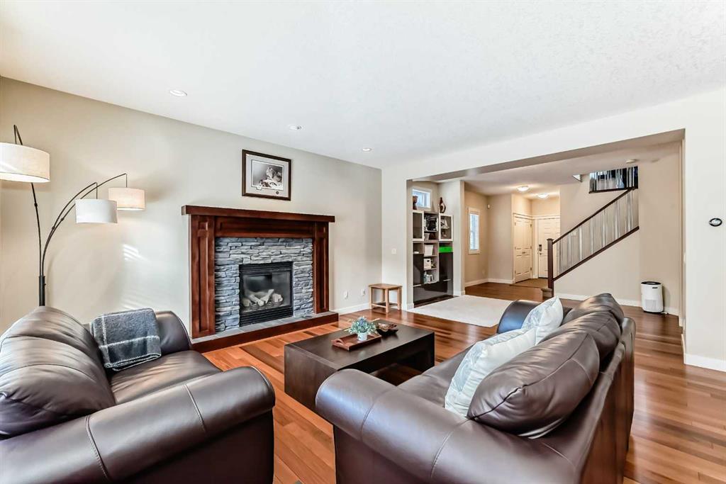 Welcome to this warm, beautiful, and meticulously maintained 2,167 sq ft home in the highly desirable community of Aspen Woods, ideally located close to excellent schools, parks, and everyday amenities. Proudly offered by the original owners, this 4 bedroom, 3.5 bathroom residence reflects years of thoughtful care, quality upgrades, and a layout that truly supports family living. The open-concept main floor is filled with natural light from the sunny south exposure and features Brazilian walnut hardwood, plus a kitchen with granite countertops and upgraded appliances, perfect for daily living and entertaining. Upstairs offers three bedrooms, including a generously sized primary suite featuring two walk-in closets and a 5-piece ensuite with a jetted tub. Two additional bedrooms are served by a 4-piece main bathroom, and the convenient upper-floor laundry includes a newer washer (2025). A spacious bonus room completes the upper level and is ideal for movie nights, a kids’ hangout, or simply unwinding after a busy day. The fully developed basement (2016) adds outstanding flexibility with a fourth bedroom, a 4-piece bathroom, spray foam insulation, insulated subfloor, a wet bar, and excellent storage for hobbies, tools, and gear. Mechanical updates include an upgraded furnace, a commercial-grade water softener (2016), and a radon mitigation system (2023). The backyard is a true highlight with mature fruit trees, garden plots, an exposed aggregate concrete patio, and a custom shed. A heated, double attached garage completes this exceptional home. A true Aspen Woods gem, beautifully cared for and ready for its next chapter.