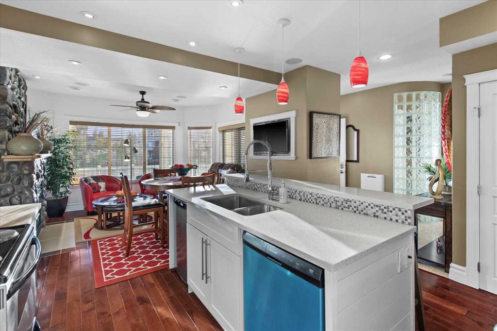 Welcome to this exceptionally cared for Bayside home offering over 3,400 sq.ft of beautifully developed living space, perfectly positioned backing onto the canal with year-round enjoyment including paddle boarding, kayaking, skating, plus unobstructed sunset and breathtaking northern lights views. This former show home, offered by the original owner, showcases true pride of ownership with extensive upgrades throughout. Mature trees frame the low-maintenance composite front porch and garden beds, creating stunning curb appeal.