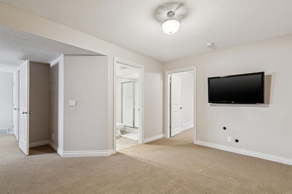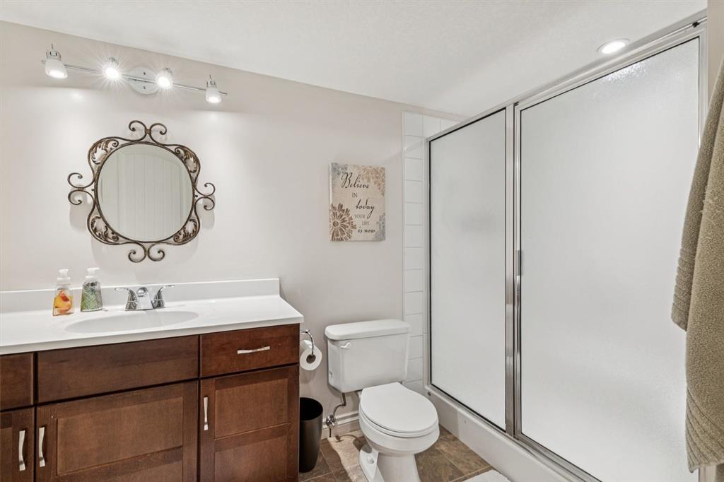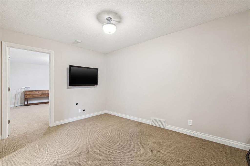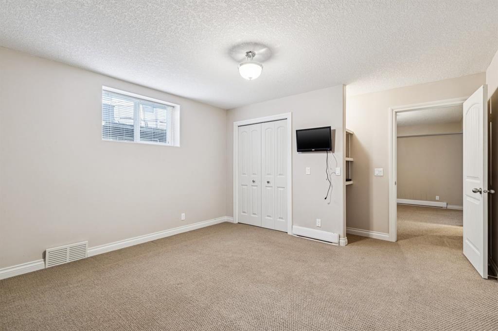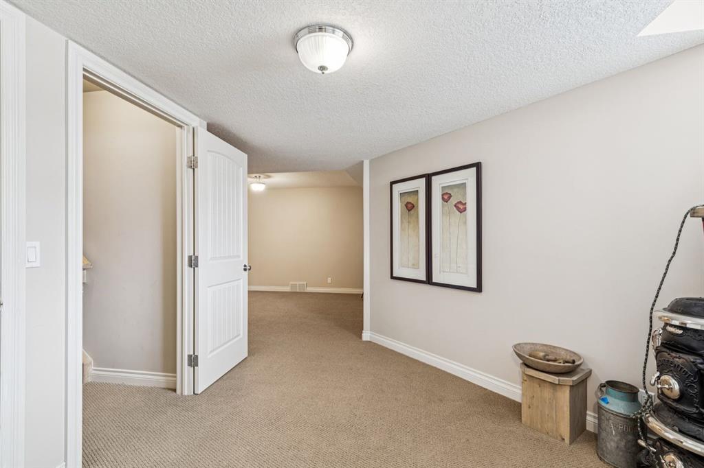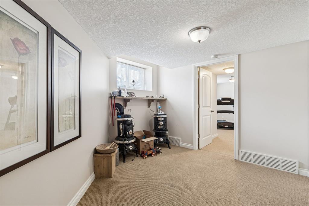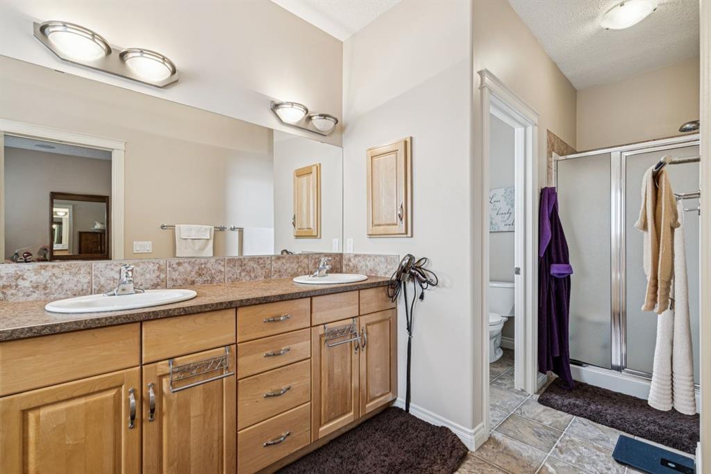 This Beautiful custom-built Fully Finished Bungalow features over 2600 sq ft of living space. Located on a large no-maintenance corner lot. The upgrades include: 9′ ceilings, Built-in Entertainment shelving unit, increased attic insulation, roughed in plumbing for the basement, 60 oz carpet with 7.5lb underlay, gas line for BBQ on deck, 42″ kitchen cabinets, crown mouldings, Air Conditioning and that’s just the beginning. The main floor offers a spacious kitchen and family room with cozy gas fireplace, A 3pc bath and dining area with access to the deck and 2 bedrooms or one bedroom and Office. The Primary bedroom features a walk-in closet and full 5pc ensuite with large soaker tub and 2 sinks – lots of space to start your day. The lower level is Finished with two additional large bedrooms, a 3pc bath, baseboard heating and large windows. The double attached garage has running water and also a convenient man-door to the yard. This home exudes pride of ownership and offers neutral colors throughout. This corner lot also features rare R.V. parking with a shed and patio space. This home is close to schools, greenspace and all the shopping that matters.