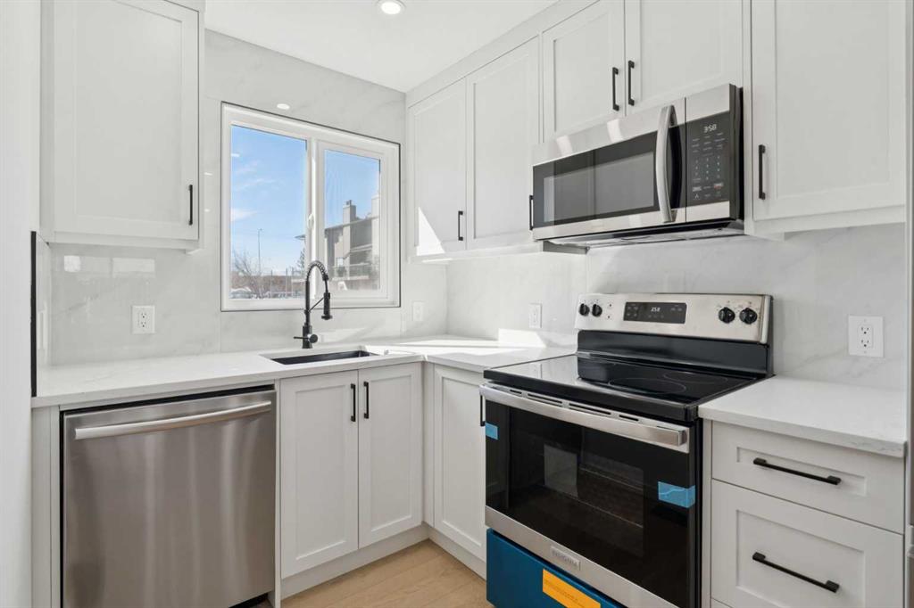Discover Townhouse 94; a fully developed and exceptionally renovated home with private outdoor space. Here are 5 things we love about this home (and we’re sure you will too): 1. A once tiered 1970’s townhome has been completely transformed into a modern and inviting space. Featuring all new windows, new LVP flooring throughout, a redesigned magazine-worthy kitchen, recessed electric fireplace, two redesigned + tiled bathrooms, custom closets and new interior doors and patio door. 2. A FLOORPLAN DESIGNED FOR REAL LIFE: As homes trend smaller and smaller Townhouse 94 is a breath of fresh air! The main floor is a showstopper with wide-plank LVP flooring and recessed electric fireplace while the kitchen-seemingly plucked from the pages of House and Home Magazine-offers 3cm quartz counters, stainless appliance package, breakfast bar and ample work/storage space. Upstairs find two well-proportioned bedrooms. The primary is nicely equipped with walk-in closet featuring custom built-ins. The cozy basement offers a large flex space which acts as a home office, media room or even a third bedroom (note, there is a closet but no window in this flex space). 3. PRIVATE BACKYARD: A rarity in the townhouse market, this home backs onto common greenspace which enhances your outdoor privacy and is complete with a private, fully fenced, backyard. The perfect place to entertain, enjoy a coffee, a cocktail or relax at the end of the day. 4. MORE THAN YOU EXPECT: This is not a simple cosmetic renovation. Every detail has been thought out here from all new windows to a high efficiency furnace with EcoBee smart thermostat, new hot water tank and all new PEX plumbing throughout the home.. 5. A CONVENIENT + CENTRAL LOCATION: Rundle is an established and centrally located community in Northeast Calgary. From Townhouse 94 you are walking distance to an abundance of amenities, shopping and restaurants at Sunridge Mall, just a 6 minute walk to the LRT station and a 5 minute drive to both Peter Lougheed and Village Square Leisure Centre a multi-purpose facility with an indoor water park, wave pool, waterslides, ice rinks, weight room, jungle gym, gymnasium along with a wide variety of activities, classes and services. Please note: Some images have been virtually staged