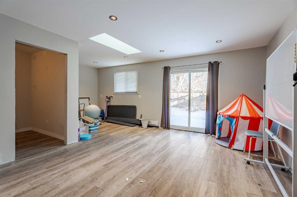 Welcome home—upgraded, bright, and incredibly versatile, 94 Brantford Crescent NW offers the Brentwood lifestyle with exceptional walkability to top schools, shopping, and transit, plus move-in-ready comfort with space to grow, work, and create. This is a location buyers consistently seek out: an established neighborhood with mature trees, everyday convenience, and a family-friendly feel. Inside, the main floor has been thoughtfully opened to create a bright, connected living space. The renovated kitchen anchors the home with granite countertops, a large island with breakfast bar, stainless steel appliances, and a bay window that fills the space with natural light. Beautiful tile and hardwood flooring run throughout the main level, creating warmth and continuity from the living room through to the dining area. The primary bedroom features a walk-in closet and private ensuite, complemented by two additional bedrooms and a full bathroom—an efficient layout ideal for downsizers seeking one-level living and families who want proximity to great schools. The fully developed basement expands the home’s versatility, offering two additional spacious bedrooms, a generous recreation room, an upgraded 3-piece bathroom, and a substantial storage/laundry area with built-in shelving to keep daily life organized. One of the standout features is the newer double detached garage, currently converted into a fully finished heated workshop/studio. Well-insulated and drywalled, it’s finished with luxury vinyl plank flooring, a skylight, patio doors to the private backyard, and its own electrical sub-panel—perfect as a home office, art studio, music room, fitness/yoga space, or workshop. (Conversion back to a double garage is straightforward if desired.) Major upgrades provide confidence: hot water tank (2025), furnace (2024), roof (2024), kitchen hood fan (2024), washer (2024), bathroom exhaust fans (2024), and electrical panel (2015). A rare combination of location, upgrades, and adaptable space in one of Calgary’s most established northwest communities—book your showing before this one is gone.