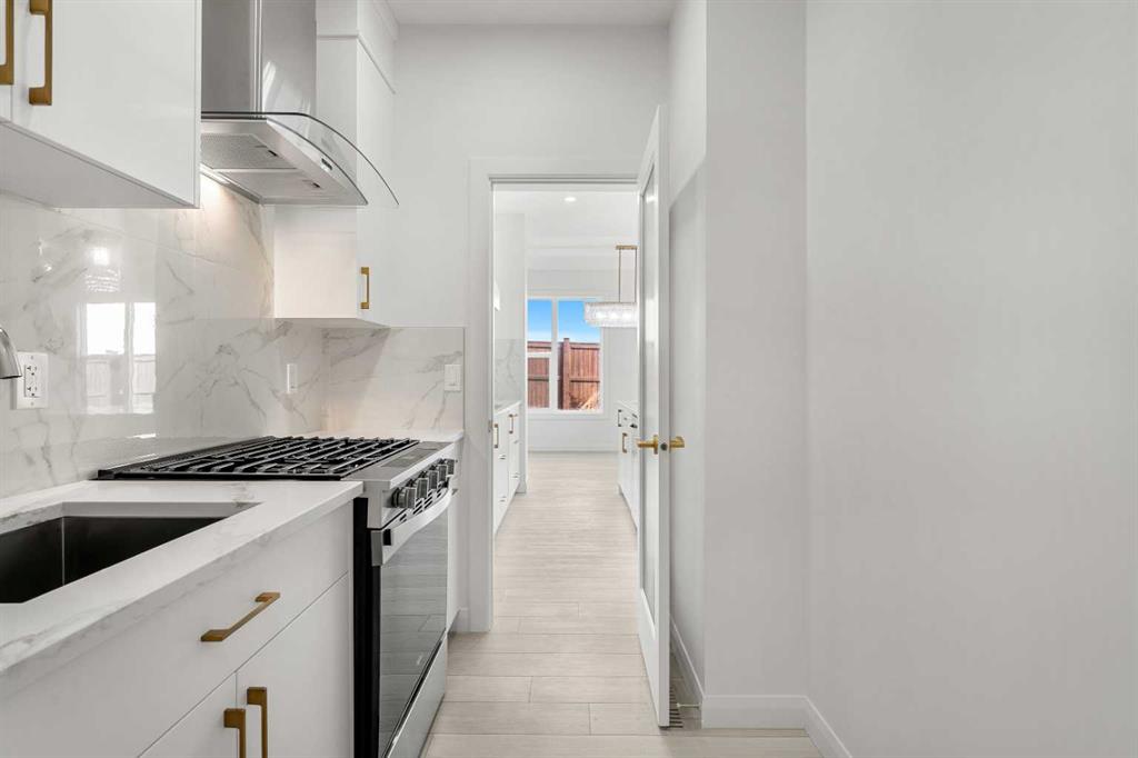 The main floor immediately stands out with its bright, open-concept design and the rare inclusion of a main-floor bedroom and full bathroom, perfect for guests, extended family, or a private home office. The kitchen is both stylish and highly functional, featuring ample cabinetry and a dedicated spice kitchen equipped with a gas stove, ideal for preparing meals while keeping the main living space open and welcoming. The layout flows seamlessly into the dining and living areas, creating an ideal environment for everyday living and entertaining.