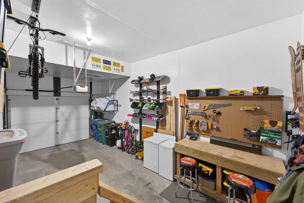 The single attached garage is drywalled, insulated, and painted, and is currently set up as a functional workshop and storage space, plus there is additional driveway parking.