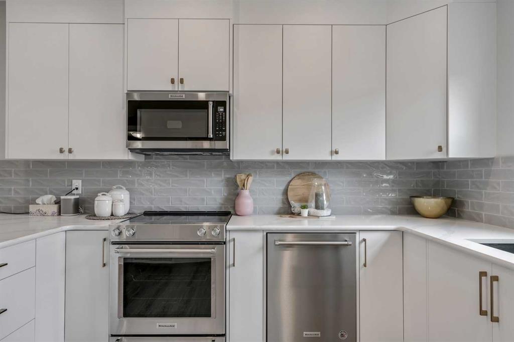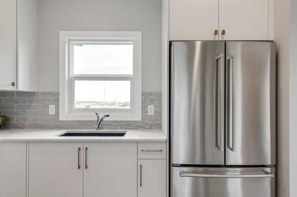 This beautifully designed show home features a double detached garage and welcoming front porch, complemented by 9’ knockdown ceilings throughout the main level. The front lifestyle room offers a spacious area to relax, while a dual-door closet provides ample storage. The center dining area flows effortlessly into the rear kitchen, which boasts stainless steel appliances including a slide-in stove, over-the-range microwave, French door refrigerator, and dishwasher, all enhanced by soft-close cabinetry, quartz countertops, and a stylish tiled backsplash with added upper soffit filler. A dual-door pantry and rear entry with a coat closet add convenience, along with a 2-piece bath on the main floor. Upstairs, plush carpeting covers the hall and two front bedrooms, while the rear primary suite features vinyl plank flooring in the 4-piece bath, complete with a quartz storage vanity, tub surround with decorative tile accents, and direct access to a spacious walk-in closet. The upper laundry area includes a washer, dryer, and additional upper cabinets for storage. A second vinyl plank 4-piece bath with quartz vanity and tiled tub surround serves the upper level, alongside an upper linen closet. The finished legal basement suite with a separate side entry offers comfortable living with carpeted floors and knockdown ceilings. It includes a common area leading to the utility room, a stacked laundry closet with full-size washer and dryer, and a vinyl plank 3-piece bath featuring a separate shower, quartz storage vanity, and tile accents. The suite’s kitchen is equipped with vinyl flooring, upper and lower cabinets, stainless steel fridge, smooth-top stove, dishwasher, quartz counters, tiled backsplash, and over-the-range microwave. A rear bedroom with closet completes this self-contained living space. Not just a home but a smart investment with a legal suite and double detached garage!