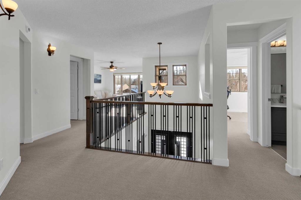 Located in Discovery Ridge & backing onto a hillside & green space, this exceptional home offers ultimate privacy & a serene natural setting. The main level features 9-foot ceilings & an open-concept design, highlighted by a two-sided fireplace with a discreet TV hidden behind a two-way mirror, seamlessly connecting the living area to an executive office. A well-organized mudroom is thoughtfully designed to support a busy family lifestyle. The kitchen is a true showpiece, featuring a professional Miele appliance package, abundant wood cabinetry, granite countertops, tile backsplash, coffee bar, breakfast nook, & a massive breakfast bar—perfect for entertaining. Patio doors just off the breakfast nook create a seamless transition to the outdoor living space, making indoor/outdoor gatherings effortless in any weather. Upstairs, you’ll find a spacious bonus room, a large primary suite with a completely renovated dream ensuite featuring quartz countertops, convenient upper-level laundry, & two additional well-sized bedrooms. The fully developed lower level offers incredible versatility with an open recreation room, games area, wet bar with bar fridge & wine cooler, corner gas fireplace, two additional bedrooms & a fully renovated four-piece bathroom. The oversized double garage is fully finished with storage shelving & still accommodates a full-size truck. Outside, the beautifully landscaped backyard is an entertainer’s paradise, complete with a covered outdoor grill, BBQ gas line, hot tub, underground sprinklers, & a garden shed. Additional upgrades include two new furnaces, new blinds, new air conditioning & renovated all bathrooms (approx. $120,000). Ideally located just a short walk to the Elbow River, Griffith Woods Park, and the Discovery Ridge shopping centre, this home offers an unparalleled lifestyle surrounded by nature & convenience. Welcome home!