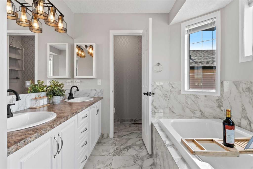 Upstairs, you’ll find three spacious bedrooms, including a bright primary suite with a walk-in closet and a 5-piece ensuite, along with a full 4-piece main bathroom. The fully finished basement offers a large rec room, fourth bedroom, full bathroom, and additional storage—ideal for growing families or guests.