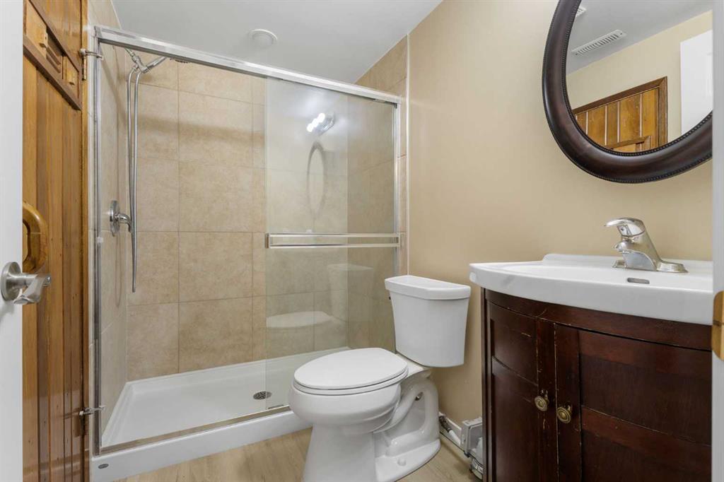 Three comfortable bedrooms are located on the main level. The fully developed basement includes a spacious rec room with a second fireplace, rough-in for a wet bar or kitchenette, and space for an additional bedroom or den. A rear walk-up basement provides direct access to the sunny west-facing backyard.