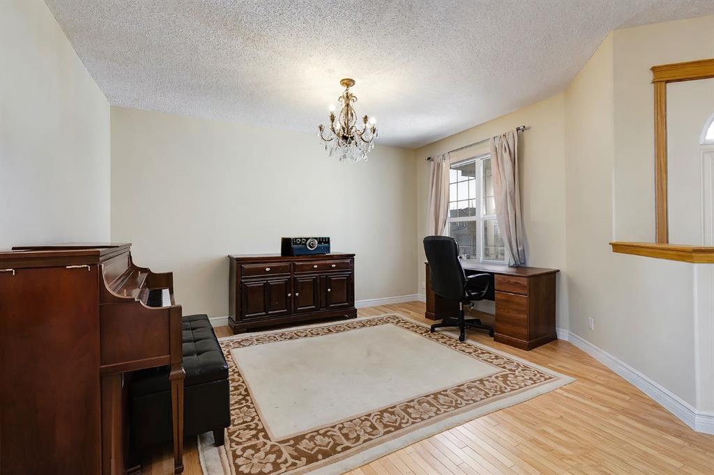 The home offers 1,985 sq. ft. above grade with a functional two-storey layout and a fully developed basement. The main floor features multiple living spaces including a front living room or office, a spacious family room with fireplace and soaring vaulted ceiling, a central kitchen with pantry, dining area overlooking the backyard, main floor laundry, and a convenient powder room. The layout provides a strong foundation for those looking to renovate and customize the home to their own style and needs.