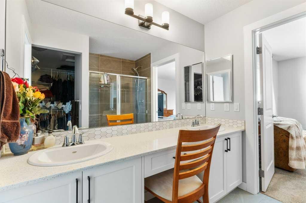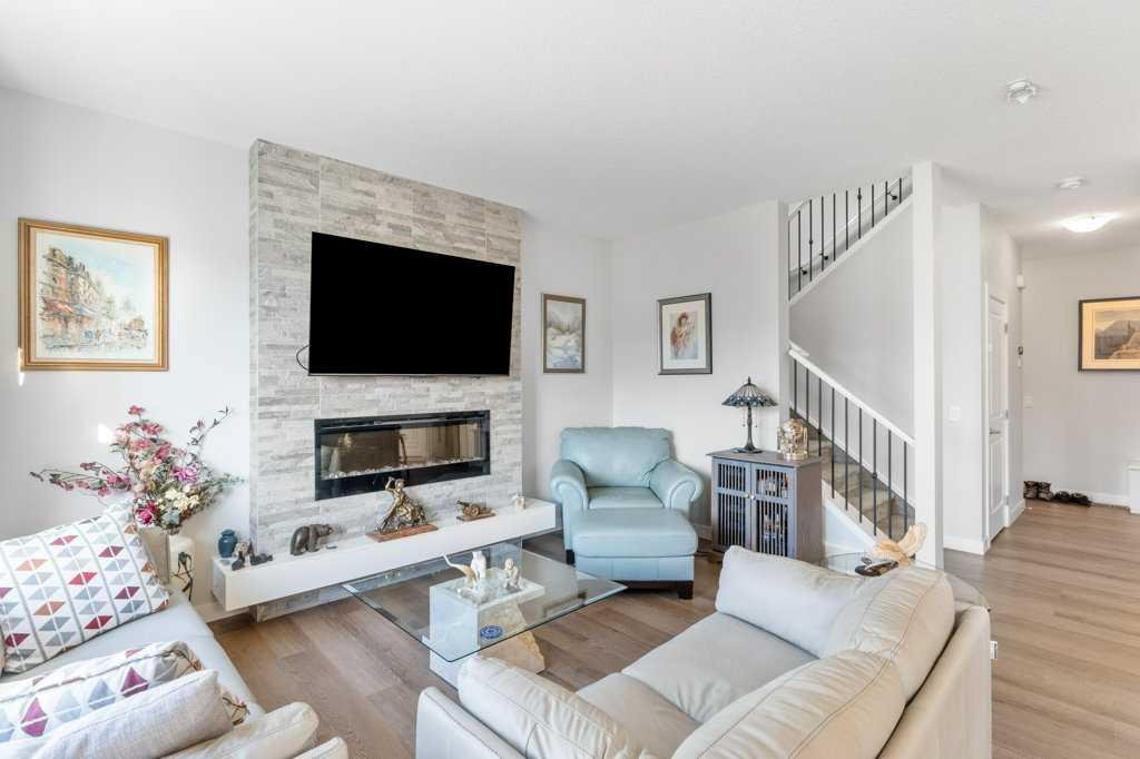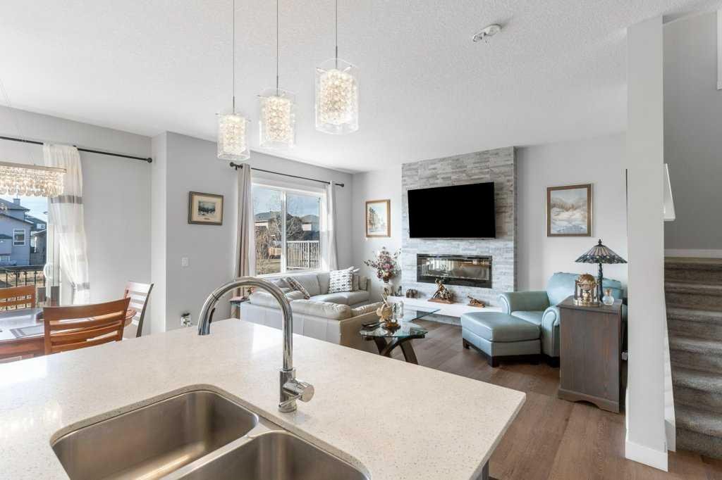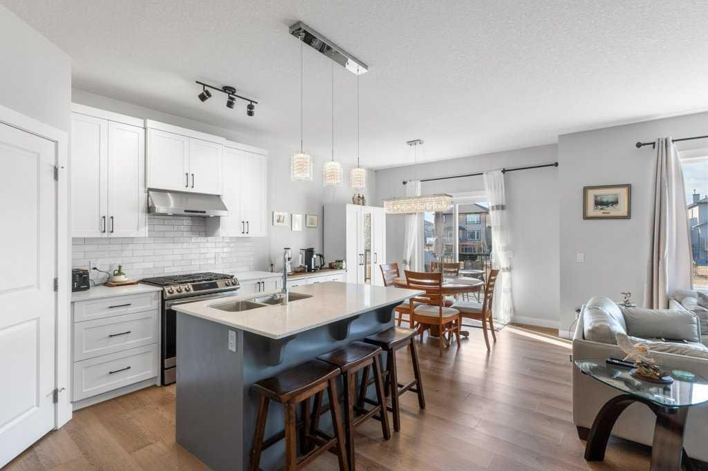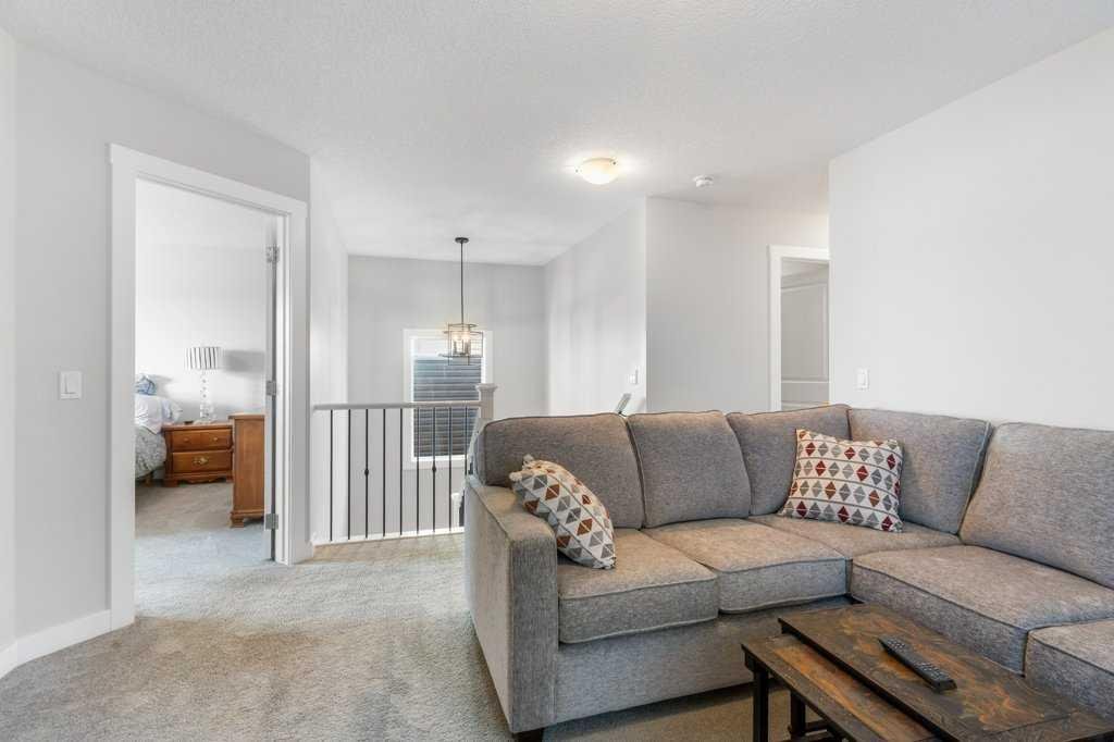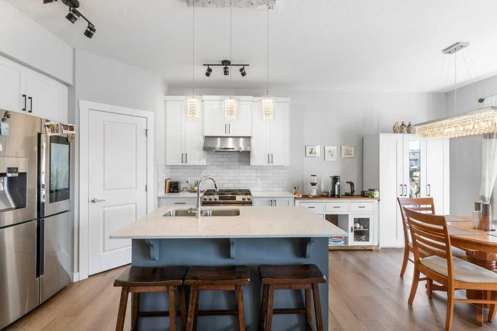 Why wait for new construction? This home offers the fresh, modern feel of new—without the delays, dust, or dirt. Fully landscaped, mostly fenced with window coverings for immediate enjoyment. Offering 3-bedroom, 2.5-baths located on a dead end road in the desirable Midtown community in Airdrie. Perfectly situated to easily access a variety of amenities, diverse parks, green spaces, and picturesque walking trails, with a tranquil POND NEARBY. What sets it apart from others: fronts a green space and BACKS a beautiful GREENBELT & STREAM allowing you to balance City life while taking in nature right off your SOUTH FACING BACK DECK. Inside, you’ll find 9′ ceilings, high-end SMART APPLIANCES, including a GAS STOVE with an air fryer. The kitchen is complete with stainless steel appliances, a CENTRAL ISLAND and an OVERSIZED CORNER PANTRY to accommodate your Costco haul. The laundry is currently located in the basement but there is optional hook-ups on the upper level should that be a buyers preference. The inviting living room features a stunning STONE ACCENT WALL with an electric fireplace and hearth, creating the coziest atmosphere. Upstairs, you’ll be greeted by a central BONUS/FAMILY ROOM which allows for a winged bedroom design for additional privacy. The spacious primary bedroom’s ensuite has dual sinks, a CENTRAL VANITY, and a large walk-in closet. The two additional bedrooms are generously sized, each with its own WALK-IN-CLOSETS. PROJECTOR & SCREEN (negotiable)! Several rooms/closets have auto-sensor lights for your added convenience. The SOUTH FACING back deck is complete with vinyl capping, offering a great outdoor space to enjoy the sunshine, and has stairs to lead you down to the fully accessible yard with garden boxes for you to enjoy. The basement is unspoiled, with high ceilings and awaits your development ideas. Don’t miss your chance to own this beautiful home in this fantastic and convenient location in Airdrie.