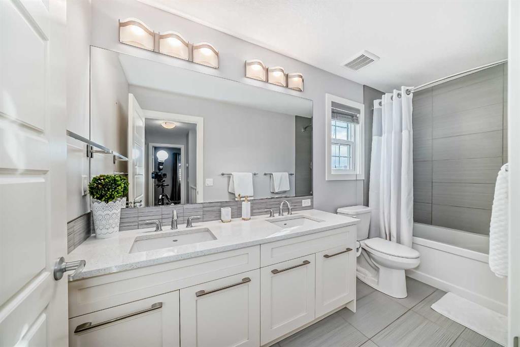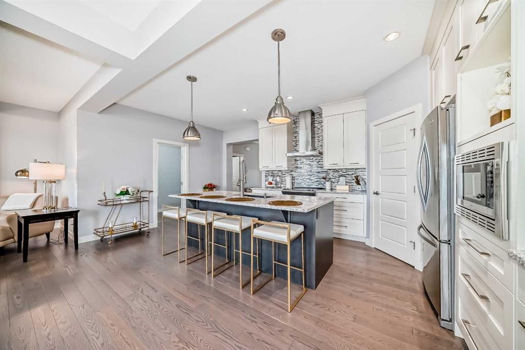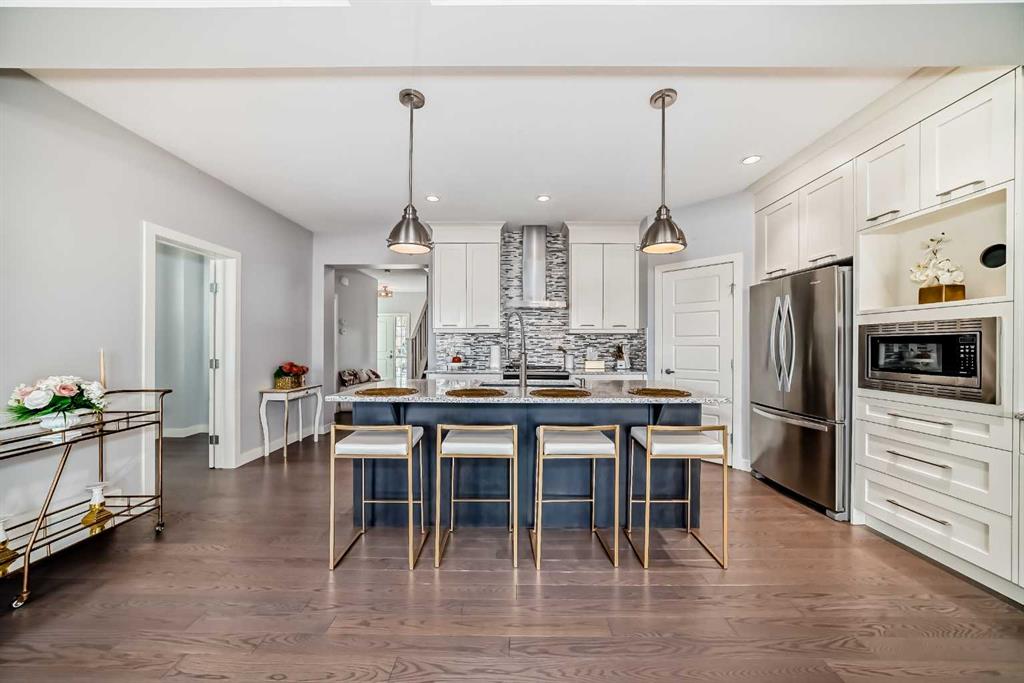 OPEN HOUSE SATURDAY JANUARY 10 1:00pm-3:00pm and SUNDAY JANUARY 11 1:00pm-3:00pm. Stunning Calbridge Show Home – the Daytona 2 model with a triple tandem heated garage, located in the highly sought-after and family-friendly community of Legacy. This exceptional 2-storey home stands out with its thoughtful design, premium finishes, and over 3,000 sq. ft. of beautifully developed living space, including the fully finished basement with 9-ft ceilings. The main floor welcomes you with a spacious foyer leading to a bright open-concept layout filled with natural light. The living room features large windows and a sleek gas fireplace with stainless surround, creating a warm and elegant space for relaxing or entertaining. A main floor den/office provides the perfect setup for those working from home. The entire main level is enhanced with gorgeous wide-plank engineered flooring and upgraded lighting throughout. The chef-inspired kitchen is sure to impress with its large quartz island, ceiling-height custom cabinetry, stainless steel appliance package, quartz countertops, and a convenient walk-through pantry. The adjoining dining area is perfect for family gatherings, while the mudroom helps keep everything organized. A 2-piece powder room completes the main level. Upstairs, you’ll find a grand bonus room that’s ideal for movie nights or a play area. This level includes four generously sized bedrooms, a 5-piece main bathroom with quartz double vanity, and a convenient upper-level laundry room. The primary suite is a true retreat, featuring a large walk-in closet with built-in shelving and a luxurious 5-piece ensuite complete with an extended quartz vanity, soaker tub, and separate shower. The fully developed basement is an entertainer’s dream, offering a spacious family room with a full wet bar, granite countertops, built-in dishwasher, bar fridge, and matching cabinetry. There’s also a custom wall bed for guests, a 3-piece bathroom, and oversized windows that flood the space with natural light. Step outside to a maintenance-free composite deck with tempered glass railing overlooking the fully fenced backyard. The stamped concrete patio provides additional space for outdoor entertaining, and the paved back lane offers privacy and easy access. Additional features include central air conditioning, a heated triple tandem garage with overhead gas heater, water softener, and a 50-gallon hot water tank. Beautiful curb appeal is showcased with Hardie board siding and stone accents. This exceptional home is ideally located close to all amenities—schools, parks, playgrounds, major shopping centers, and just minutes to Stoney Trail for easy commuting. A stunning and fully finished Calbridge show home that truly has it all—luxury, comfort, and location. Don’t miss your opportunity to make this beautiful Legacy home yours! Book your private showing today!