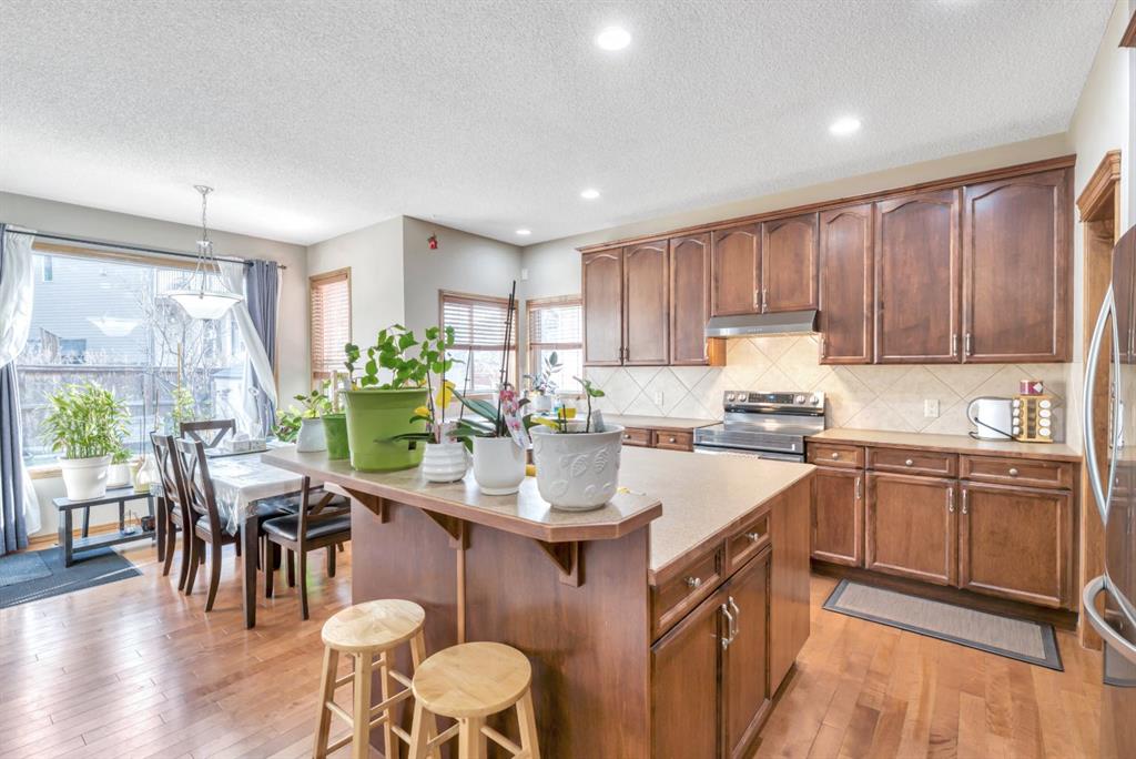 The main floor is functional and inviting, featuring a roomy foyer, a front home office/den, 2-piece powder room, main-floor laundry at the back entrance, and a spacious living room centered around the gas fireplace. The kitchen is well-appointed with an endless amount of cabinetry and counter space, central island, walk-through pantry, and a bright nook with access to the deck and backyard—perfect for everyday living and entertaining.