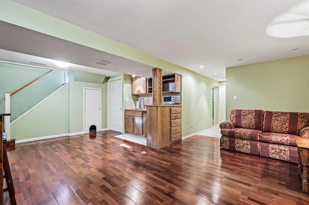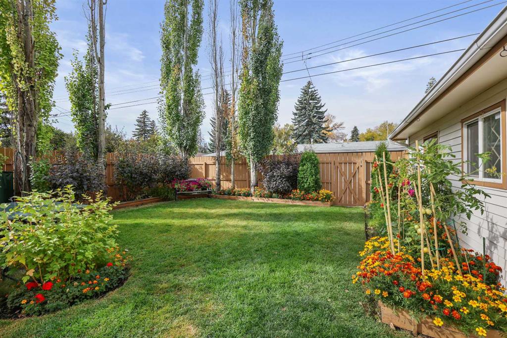Escape the hustle and bustle and come home to this quiet tree lined street that is easily one of the prettiest in Acadia. This bungalow property has been lovingly and carefully updated and maintained by its current owners for over 30 years. It is move-in ready in its current state or could be gradually updated as a project home. The yard and gardens are something out of a gardening magazine and only enhances what is already offered by the street as a whole. The sun-soaked floorplan consists of a spacious main floor living area with a separate dining area and a private kitchen overlooking the back yard space. Tasteful archways enrich the transitions in these areas and the living and hallways are adorned with attractive hardwood flooring. Down the hall you have three bedrooms and a vintage shared bathroom that looks as it did on the day it was built. You’ll notice fine handcrafted built-ins in many of the closets and storage spaces throughout the home, tastefully expanding the storage space. Downstairs you’ll find two additional bedrooms, both with egress windows along with an updated four-piece bathroom. There is also huge living area with a eucalyptus hardwood floor complete with a wet bar and a space for a dishwasher. Mechanically sound, there is an updated high efficiency furnace and 50-gallon hot water tank. The windows are updated as are the shingles. The fully fenced back yard is second to none and has two storage sheds and a 22’x24’ double detached garage with paved lane access. The close in community of Acadia offers many nearby amenities including all schools through high school, relative closeness to the LRT and other transit options and easy road access to Deerfoot, Blackfoot and Macleod Trails. There is so much here in this complete package. Come and see for yourself today!