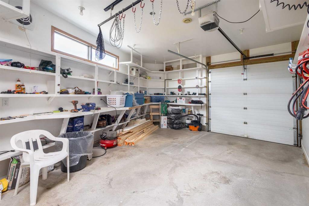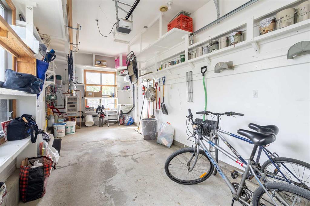 The garage is a true showpiece, carefully designed for hobbyists and car enthusiasts. Built on a six-inch concrete slab with pony walls, it is heated year-round by its own in-floor hydronic zone. The structure includes a reinforced 2×6 north wall with R-20 insulation, a divider wall for sturdiness and dust control, two 220-volt outlets, and all wiring routed through the top of the walls for clean installation. Every plug is tied to a single 15-amp breaker for power management. The garage also features a dedicated hot water tank, proper sink drain and water supply plumbed to the house, extra hose bibs, built-in shelving, and a workbench. Large windows and a skylight bring in natural light, while a solid exterior bollard protects the structure.