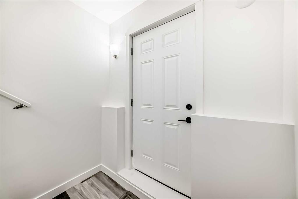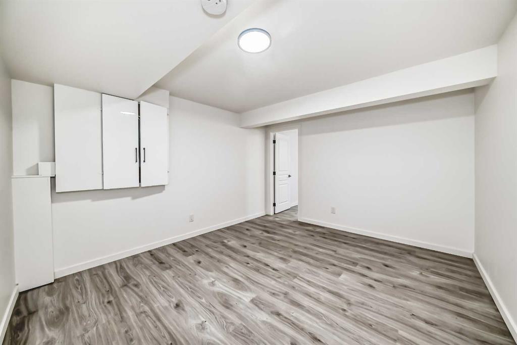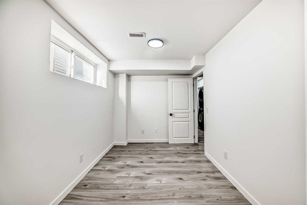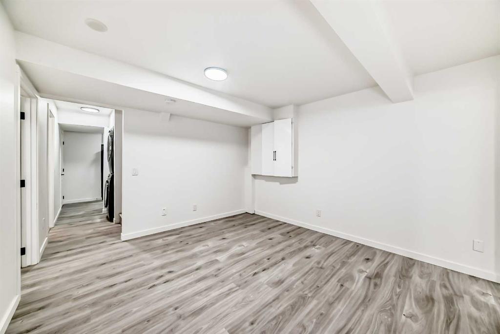 The illegal suite in basement features a separate exterior entrance and includes two bedrooms with walk-in closets, a full kitchen with appliances and ample cabinetry, a large living area, a full bathroom, and a dedicated laundry space, completing the basement.