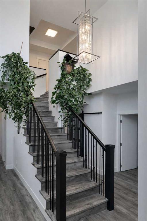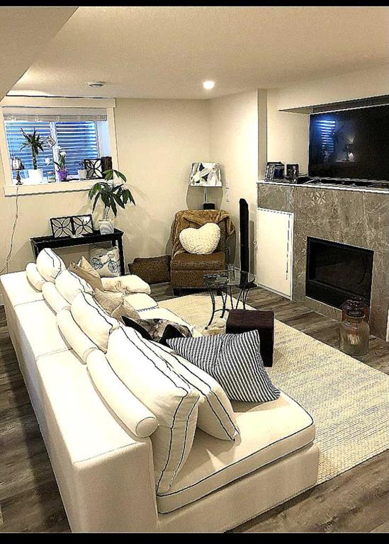 wired-for-sound system, primarily solid-core doors, soundproofing between basement and main floors for quiet private living, roughed in central vacuum system, illuminated granite backsplash paired with quartz countertops, light-filled open living spaces highlighted by architecturally detailed ceilings, Keyless entry, roughed in wiring for future solar panels, 6-ft stand-alone soaker tub as the centerpiece of the spa-like ensuite, the gourmet kitchen is thoughtfully designed with high-end appliances and elegant finishes—perfect for both everyday living and entertaining, Bosch speed oven, gas line behind the stove adds flexibilty, separate electrical panels for basement and upper floor, separate furnaces, two 50 gallon hot water tanks, infloor heated tile in master ensuite, central air conditioning for main house and many more. The basement has a large Legal Suite (Built 2019) separate entrance, fireplace adding warmth and luxury, one large bedroom and a large bathroom. A beautifully appointed exterior complements the home’s elevated interior. Double detached garage is insulated. Perennial gardens surrounded by mature trees, zero-scaped front and backyard with outdoor fire pit for low-maintenance living. Superior Location & Connectivity, Luxury living with unmatched accessibility which includes a short walk to ctrain station, close to major transit routes, two nearby neighbourhood schools, quick access to Stoney Trail and Crowchild Trail. A rare opportunity to own a beautifully upgraded home with a fully legal suite, modern systems, and exceptional accessibility in one of the city’s most connected and desirable neighbourhoods.