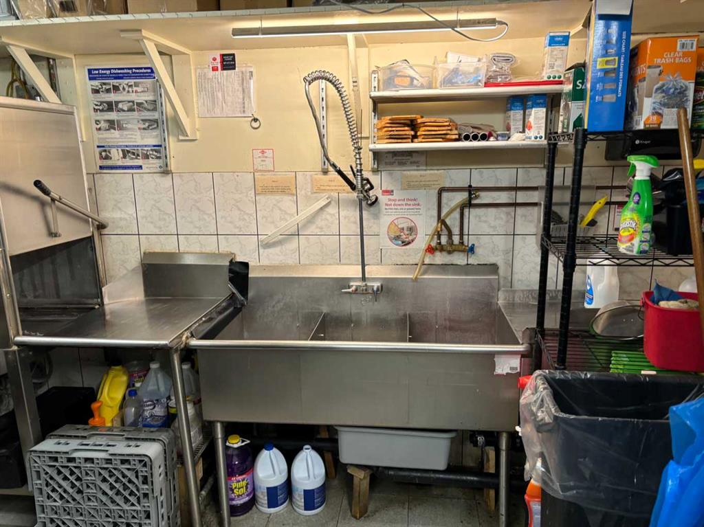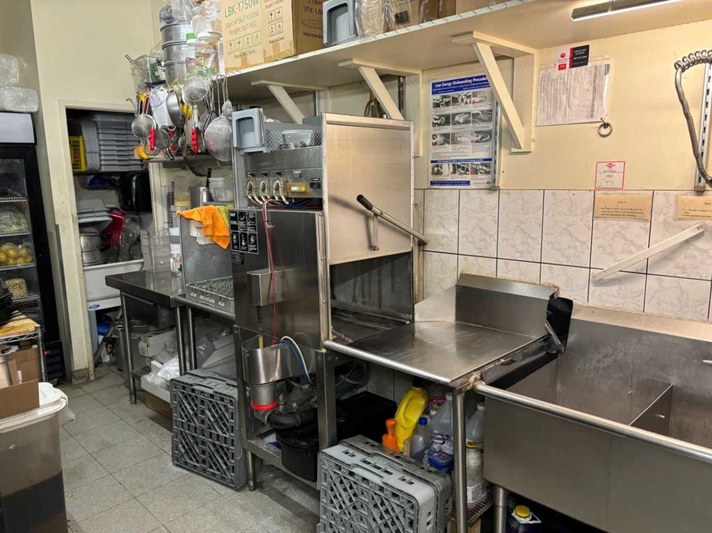 The space (1,556 Sq. Ft) features a tastefully designed dining area with seating for 30+ guests, complemented by a cooler display case for ready-to-go meals—perfect for busy customers on the move. A fully equipped commercial kitchen includes a 9-foot canopy, two double-bin deep fryers, gas range burners, commercial dishwasher, multiple stand-up coolers and freezers and central prep area. Kitchen rear area has a man door for ease and convenience for unloading of fresh inventory. Business name will not be included, but you can continue their current cuisine to retain their customer base or switch food concepts. Pending landlord approval.