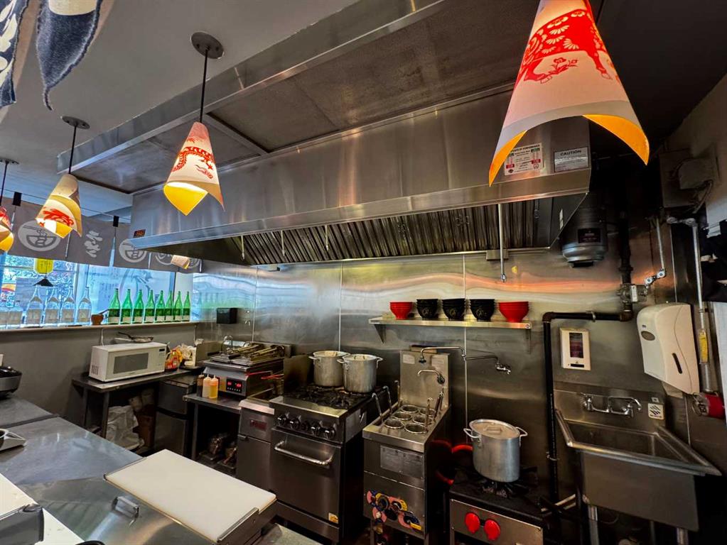An excellent opportunity to own a well-established Japanese ramen restaurant in a prime, high-traffic area with a consistent flow of customers. The 1,239 sqft restaurant features an open-concept commercial kitchen with a great layout that enhances both efficiency and customer experience. One parking stall included (monthly fee: $250). Downstairs storage space: approx. 828 sq. ft. Royalty fee: minimum $3,000 or 5% of sales. Initial renovation and franchise investment: nearly $300,000. Lease will be expired May 31, 2026, with a 5-year renewal option The lease expires on May 31, 2026, with a 5-year renewal option available. The new owner needs to continue operating under a franchise or chain-brand concept, or it may continue as a Japanese ramen restaurant. Share sale, please contact Phil for detail.