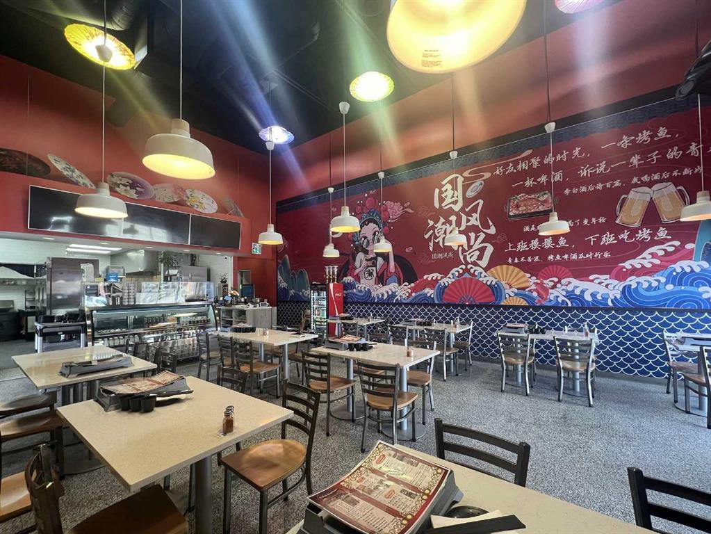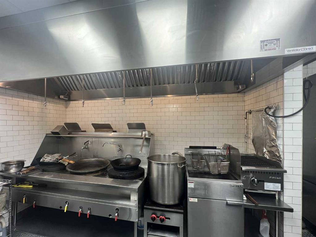 Well-equipped, fully built-out restaurant in a central location — ideal for a wide variety of cuisines including Chinese, Korean, Japanese, Italian, and more. Restaurant with full commercial kitchen: commercial canopy, gas grill, stock pot range, commercial wok range, deep frier, multiple freezers and cooler, multiple display coolers, commercial dishwasher, glasswasher, draft beer dispenser