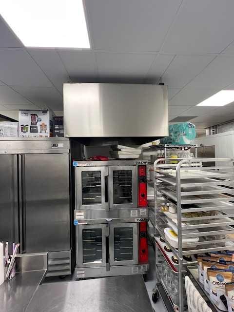 This 1,300 SF corner café/bakery space is located in a modern industrial building with abundant on-site parking and offers an open, airy feel with strong visual appeal. The unit features tall exposed ceilings, abundant natural light, and a thoughtfully designed layout ideal for food and beverage operators. A custom arched shelving cove and glass display refrigerator create an inviting front-of-house presentation, complemented by a cozy seating area perfect for customers. The back-of-house kitchen has been smartly designed for efficiency, with generous counter space, ample storage, and a full lineup of essential equipment, including a double oven, canopy hood, walk-in cooler, freezer, and dedicated cleaning station. The space is fully built out for a café or bakery concept and allows for a smooth transition for an owner-operator or investor. A turnkey opportunity in a highly functional, visually striking space well-suited for a variety of food and creative concepts.