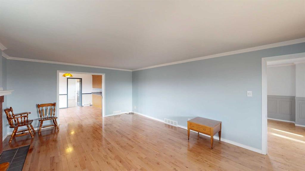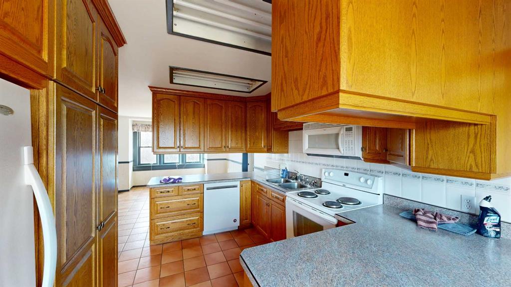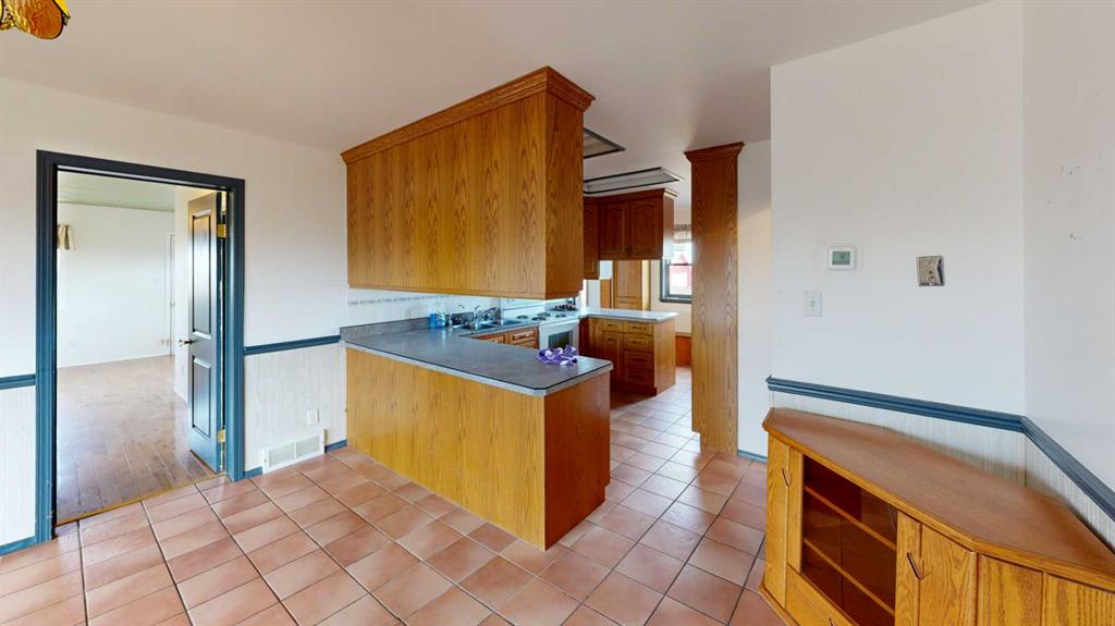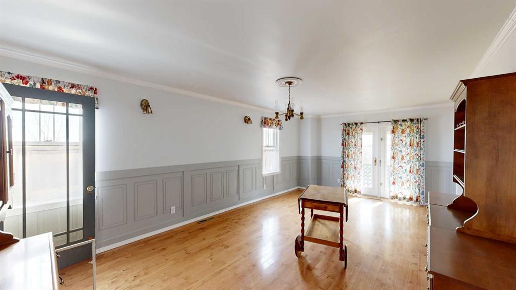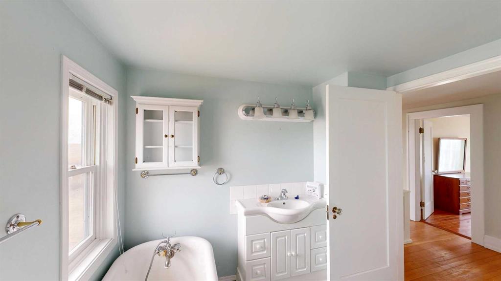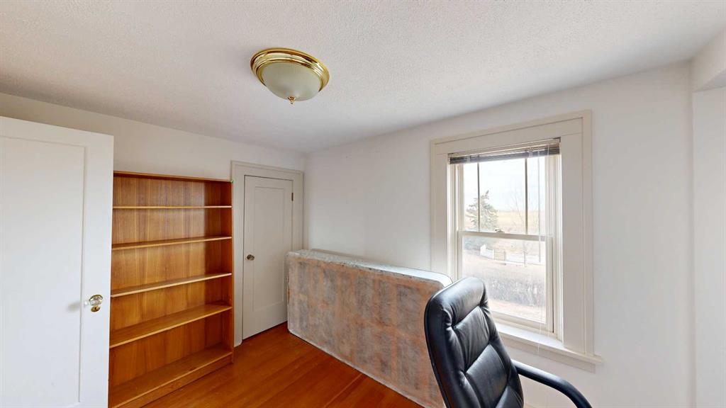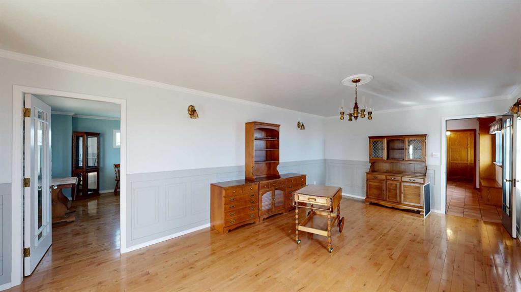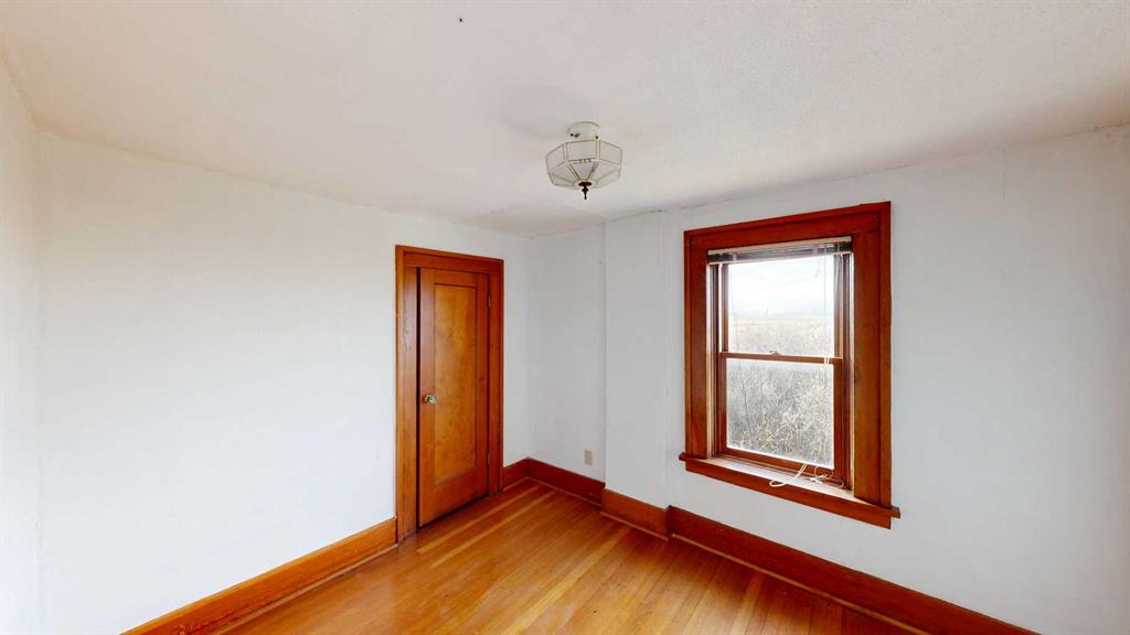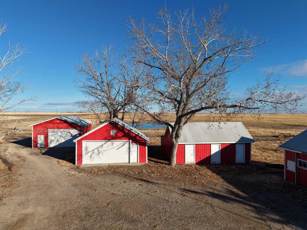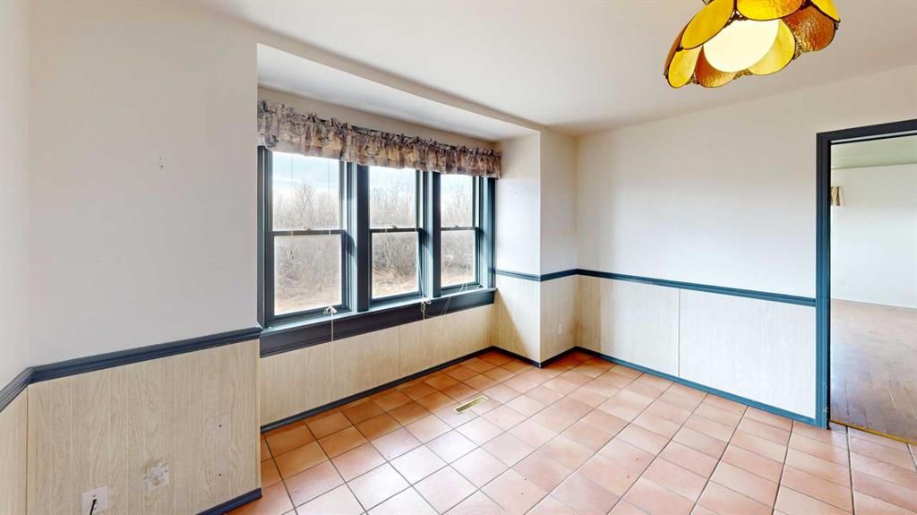Built in 1910, this charming two-story farmhouse sits on 4.94 acres with easy paved access, blending timeless character with thoughtful updates. A welcoming covered front verandah and spacious back deck overlook a mature yard complete with shelterbelt, established trees, patio area, and a picturesque pond feature. The main-floor primary bedroom is a later addition, offering a private ensuite bath and direct access to the deck. Inside, the home features five bedrooms in total, two laundry areas (main floor and upper level), a cozy breakfast nook, and both formal and casual dining spaces. Crown molding, French doors, and a wood-burning fireplace add warmth and elegance, with French door access into the inviting living room. The fully perimeter-fenced property includes new fencing and an impressive array of outbuildings—garages, workshops, barns, and corrals—ideal for hobby farming or country living. An amazing farmhouse setting with convenience in mind, located just 10 minutes from High River.