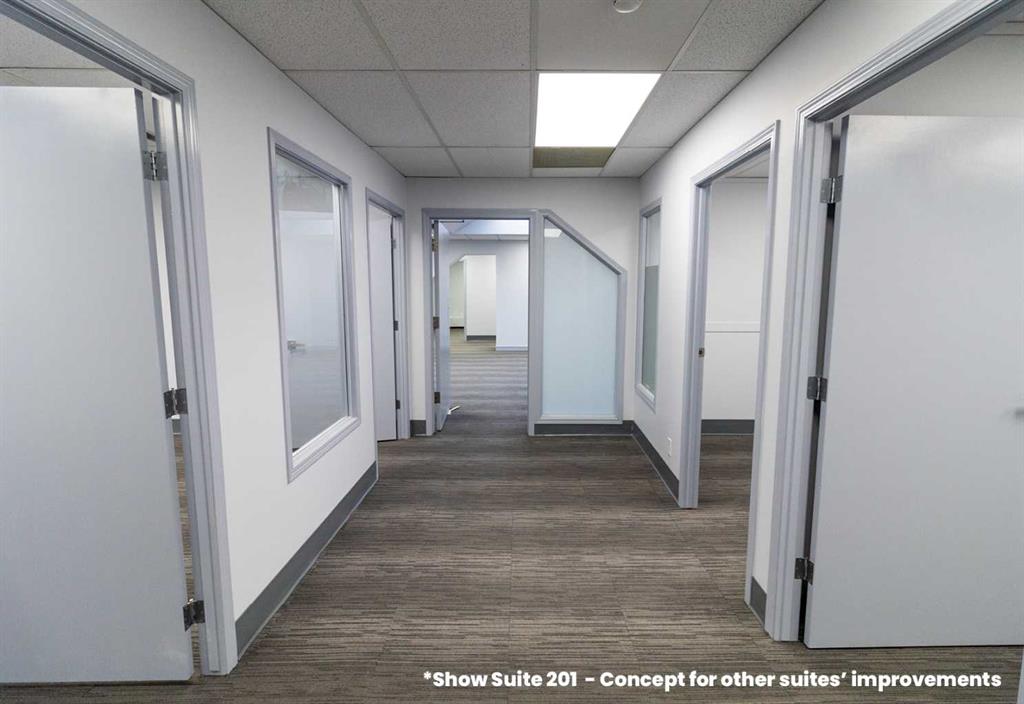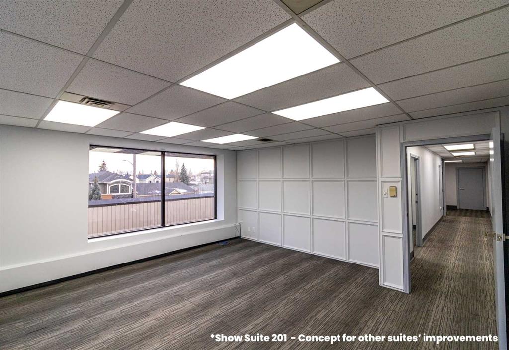 Suite 203 (3,914 SF) – Second-floor office located in the centrally situated northwest neighbourhood of Mount Pleasant. Features multiple private offices of various sizes with abundant natural light. Ample free surface parking available on site. Prominent signage exposure to 4th Street NW. Elevator and stair access to the second floor.