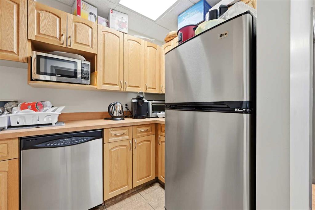Both levels are configured as office space. The main floor is currently tenanted, providing stable income through Spring 2027, while the upper mezzanine is owner-occupied—offering flexibility for an owner-user or future rental income. The upper level features 6 private offices, 2 bathrooms, a kitchen, and a dedicated supply room, creating a highly functional and professional workspace.