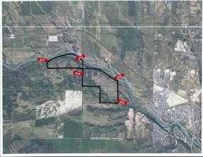 Set within the Municipal District of Rocky View, this expansive property features stunning Bow River frontage—up to one to two miles if purchased together—along with sweeping mountain views and a truly picturesque natural landscape. The setting is exceptionally scenic, providing a rare combination of river access, open land, and long-term development potential. Or just build your own dream house on this awesome location.